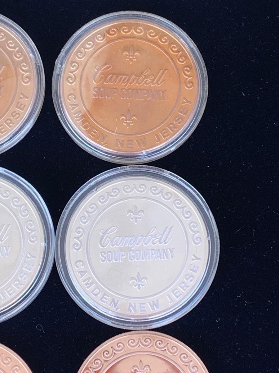 A collection of 6 Campbell's Soup Sales Year Tokens