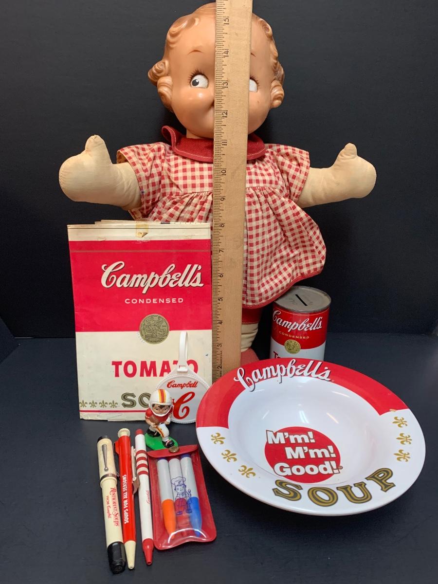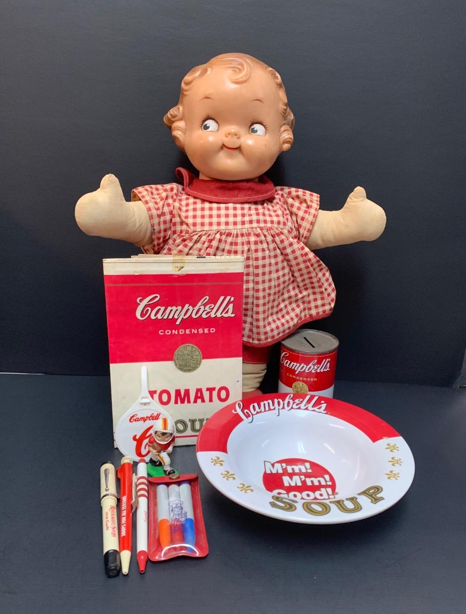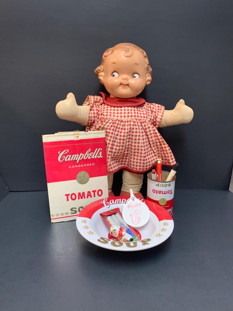 LOT 137R: Campbell's Collection: Campbell's Kid Doll, Book Cover, Bowl & More