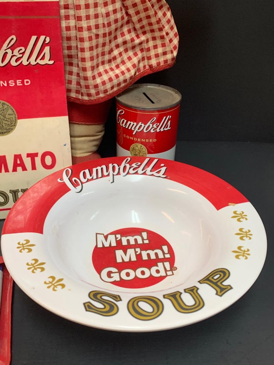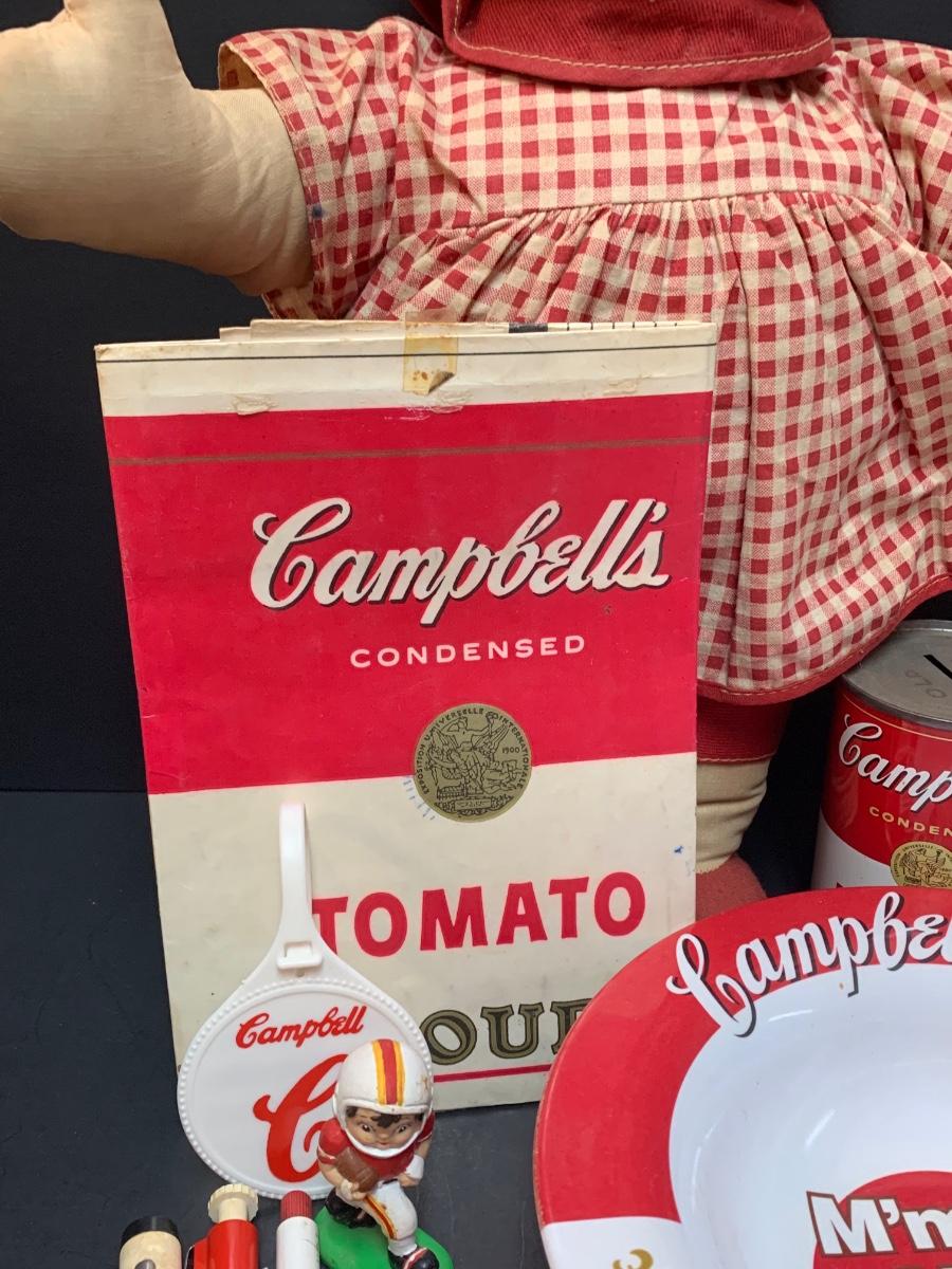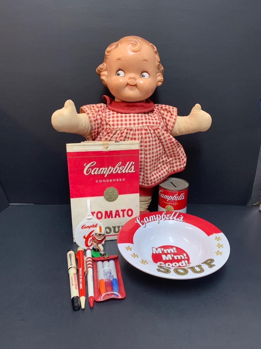LOT 137R: Campbell's Collection: Campbell's Kid Doll, Book Cover, Bowl & More