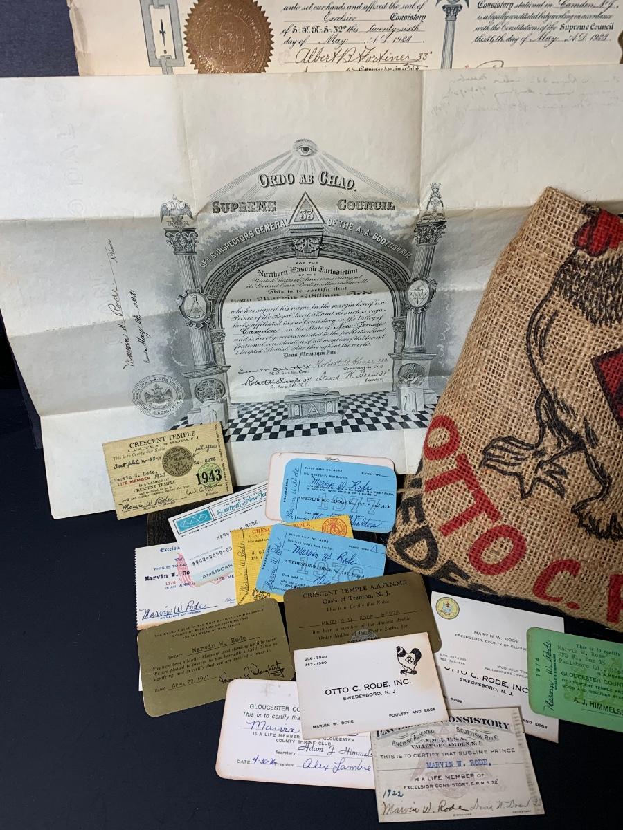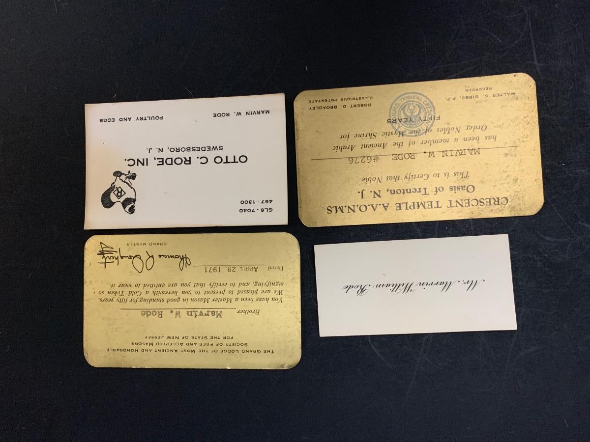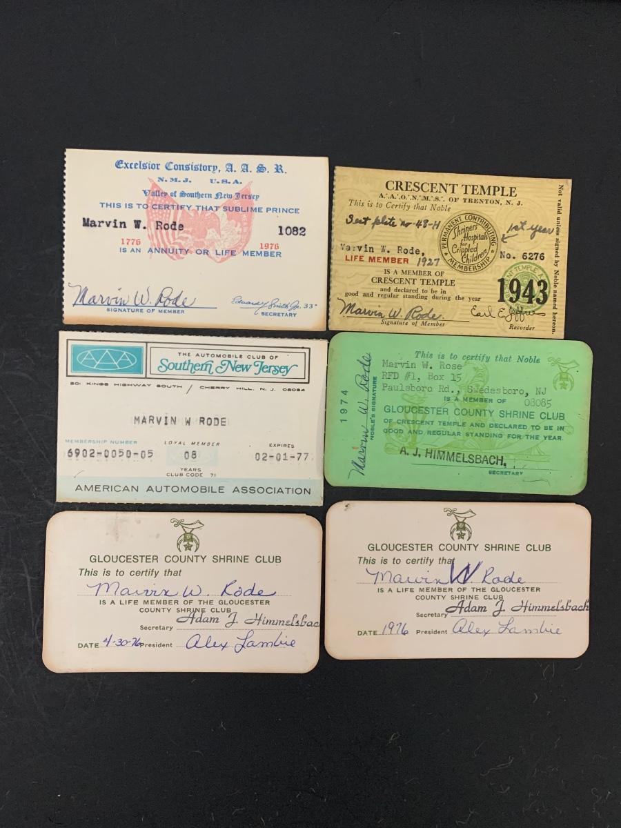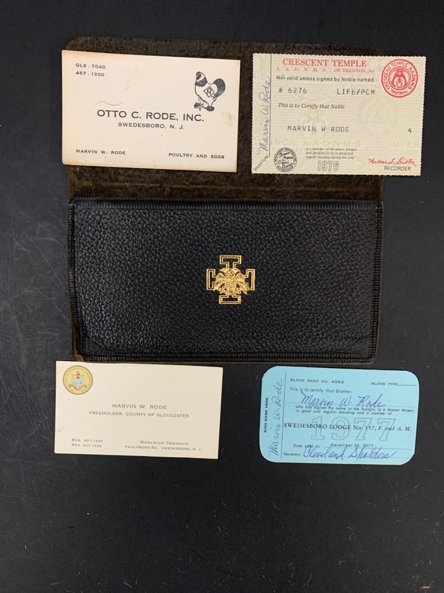 Collection of Marvin W. Rode Masonic Acceptance & I.D. Cards along with Otto