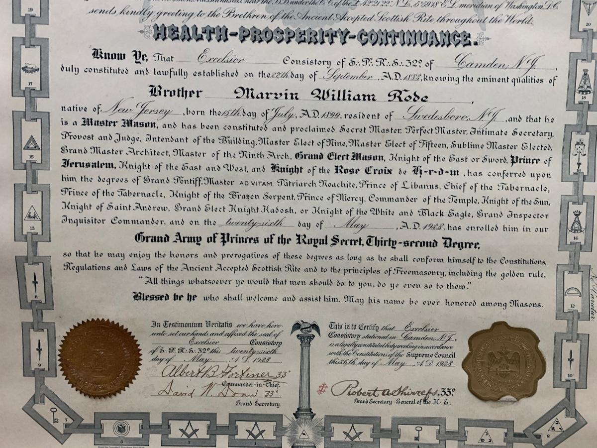 LOT 144R: Masonic Collection of Marvin W. Rode & More (Local Collection)