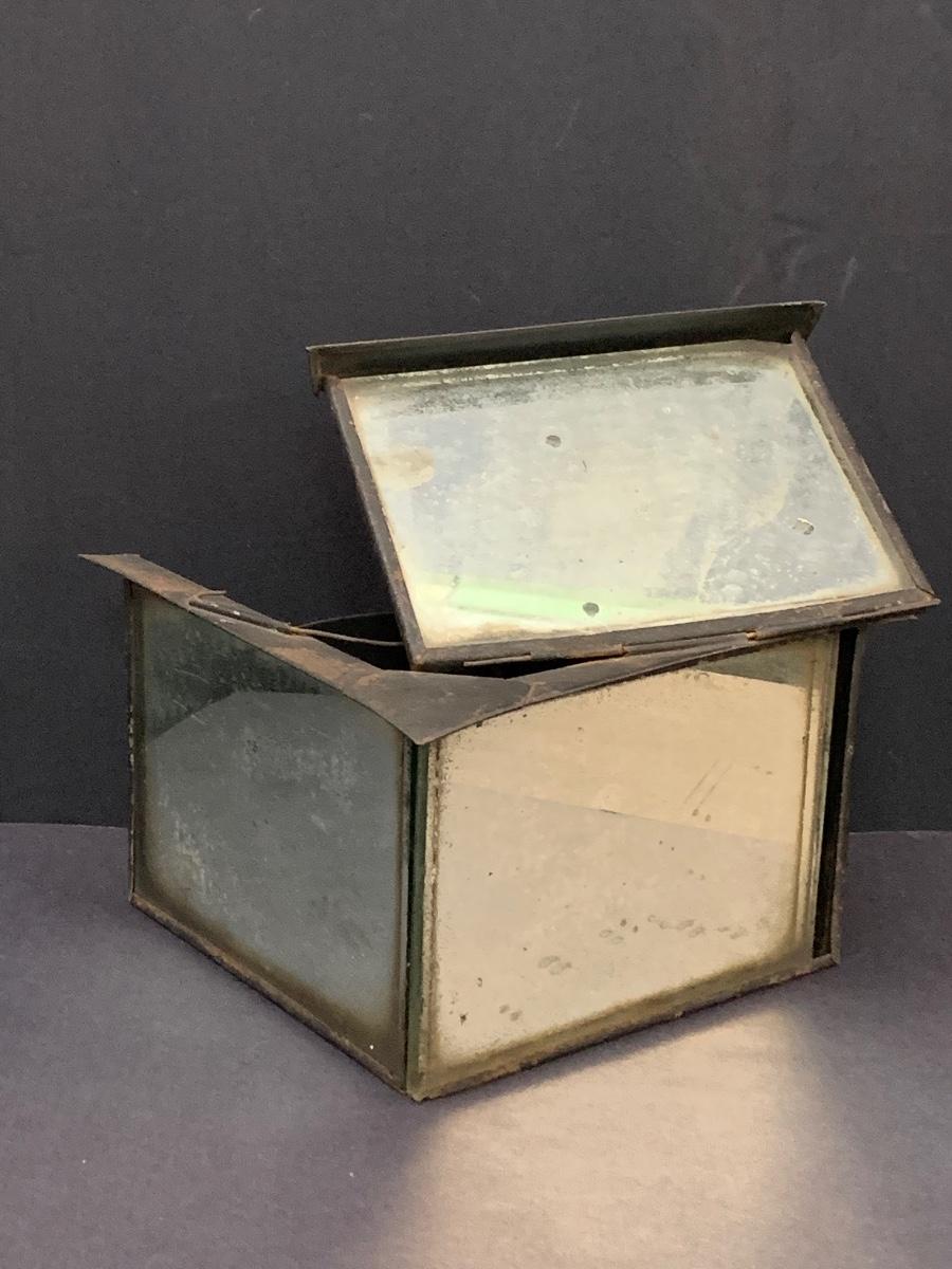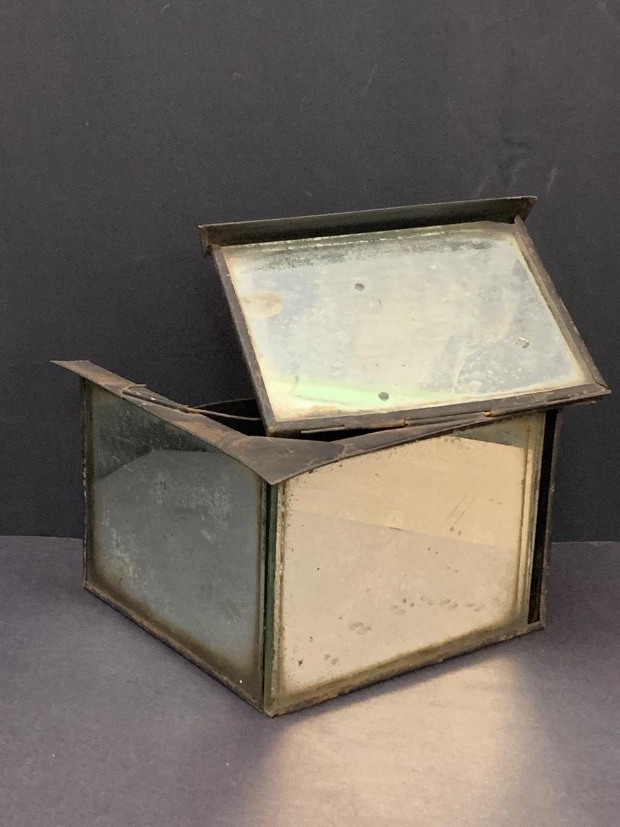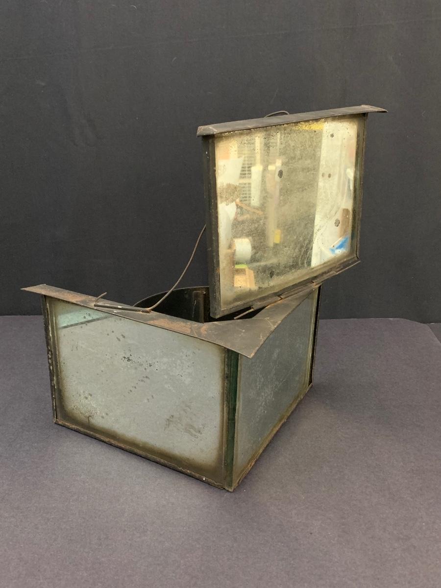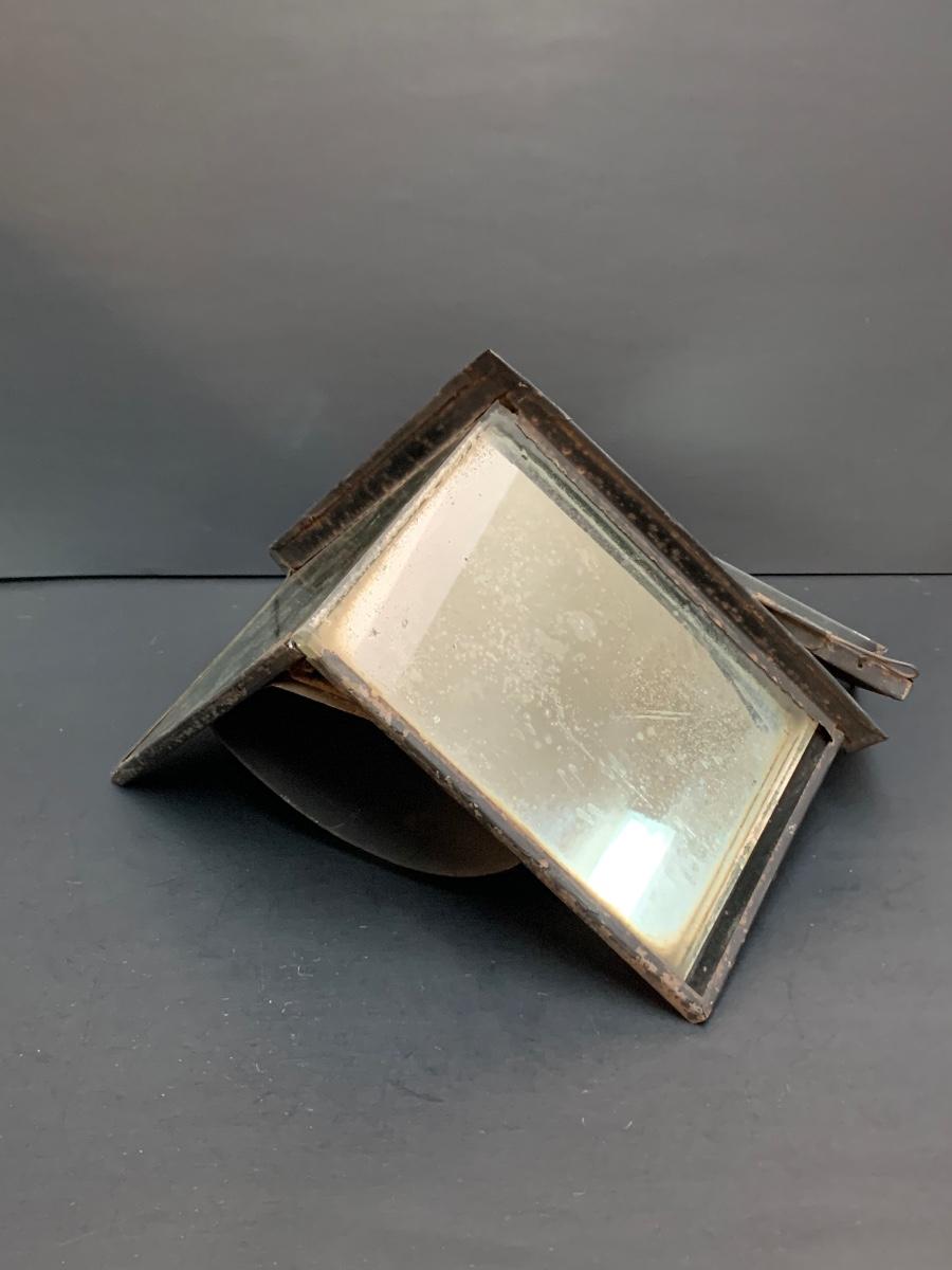 This piece features a set of 3 mirrors. It is was usually placed on a 2 or 3 window then angled in such a way to see who was at your door.