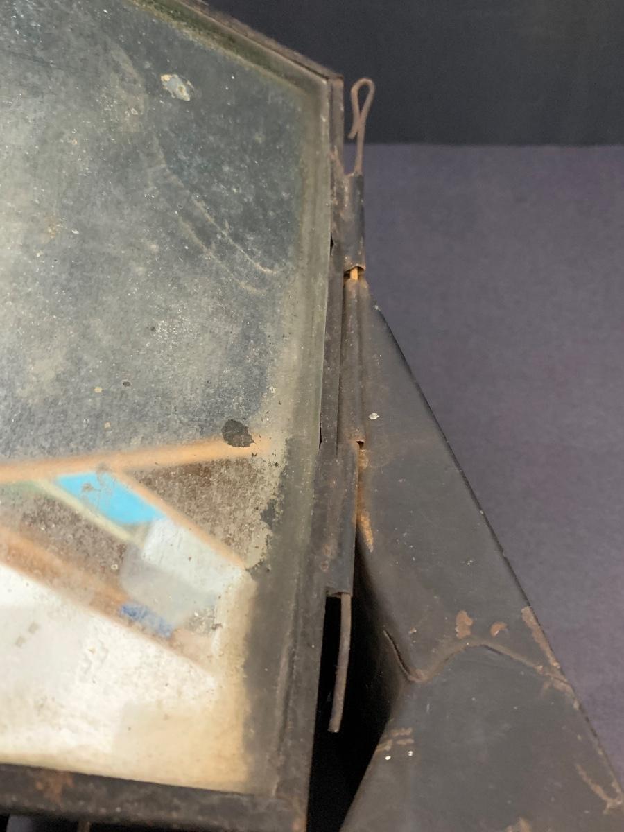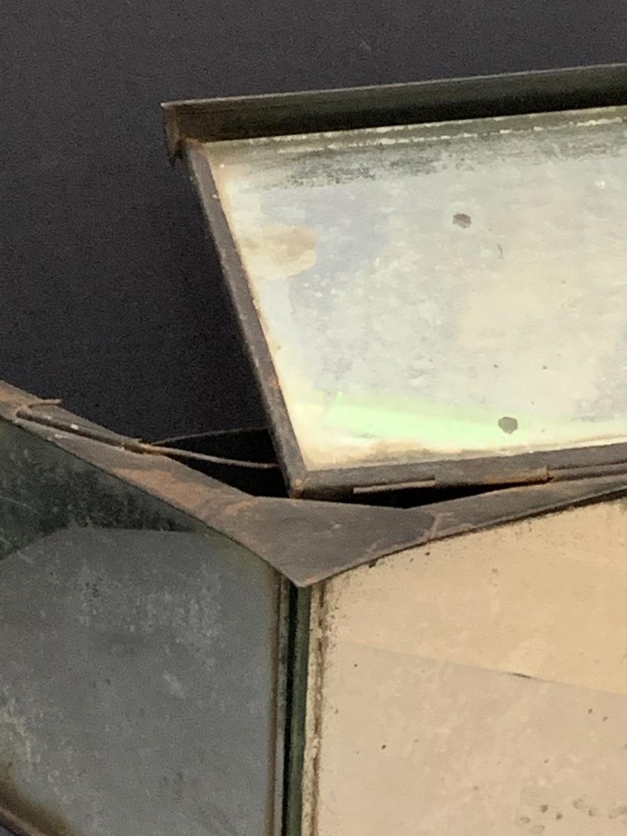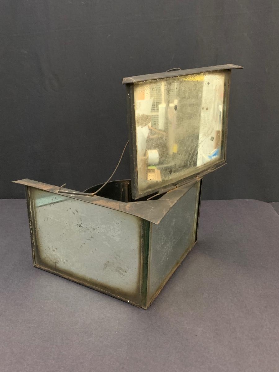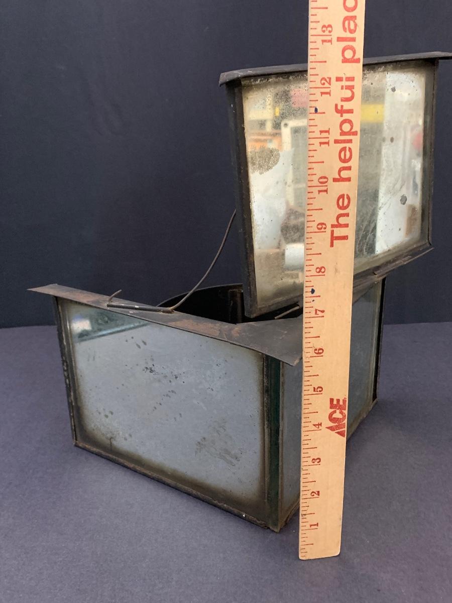 This piece features a set of 3 mirrors. It is was usually placed on a 2 or 3 window then angled in such a way to see who was at your door.