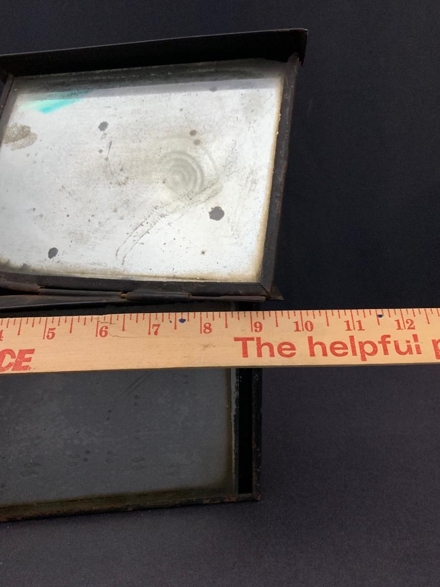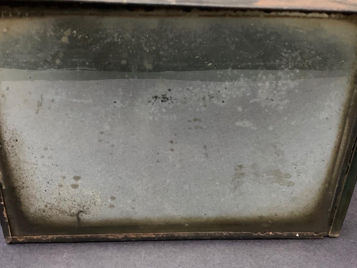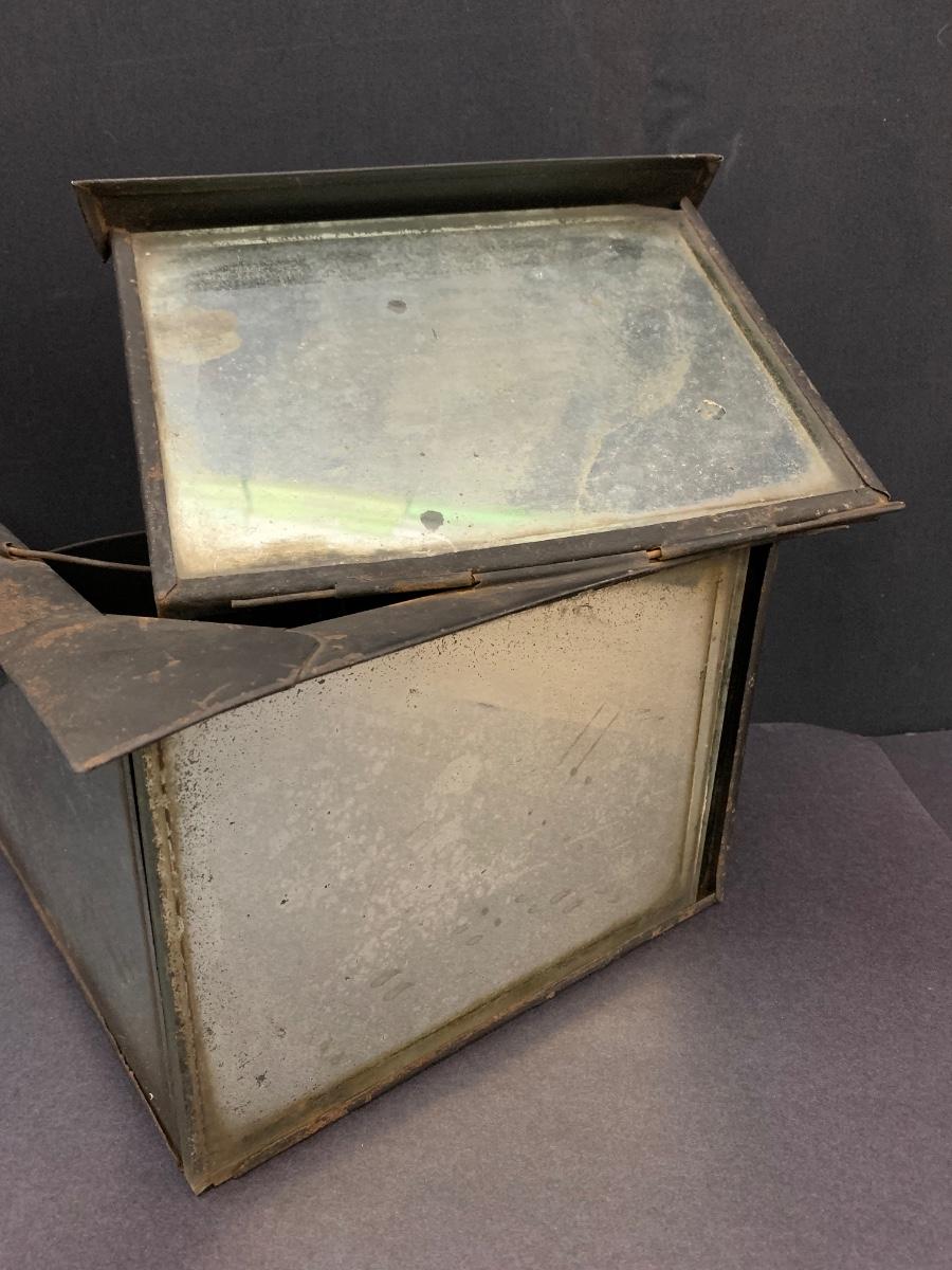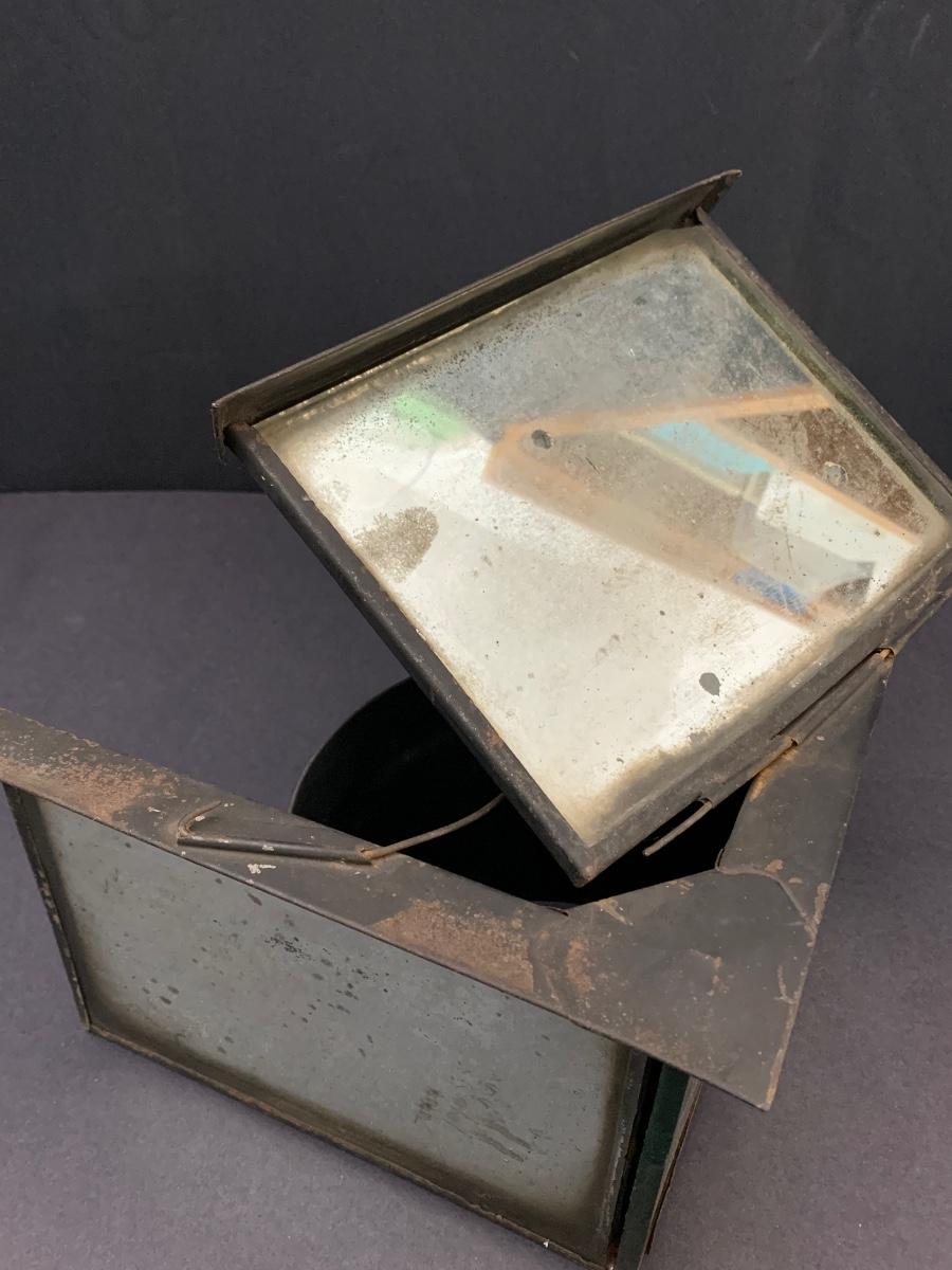 This piece features a set of 3 mirrors. It is was usually placed on a 2 or 3 window then angled in such a way to see who was at your door.