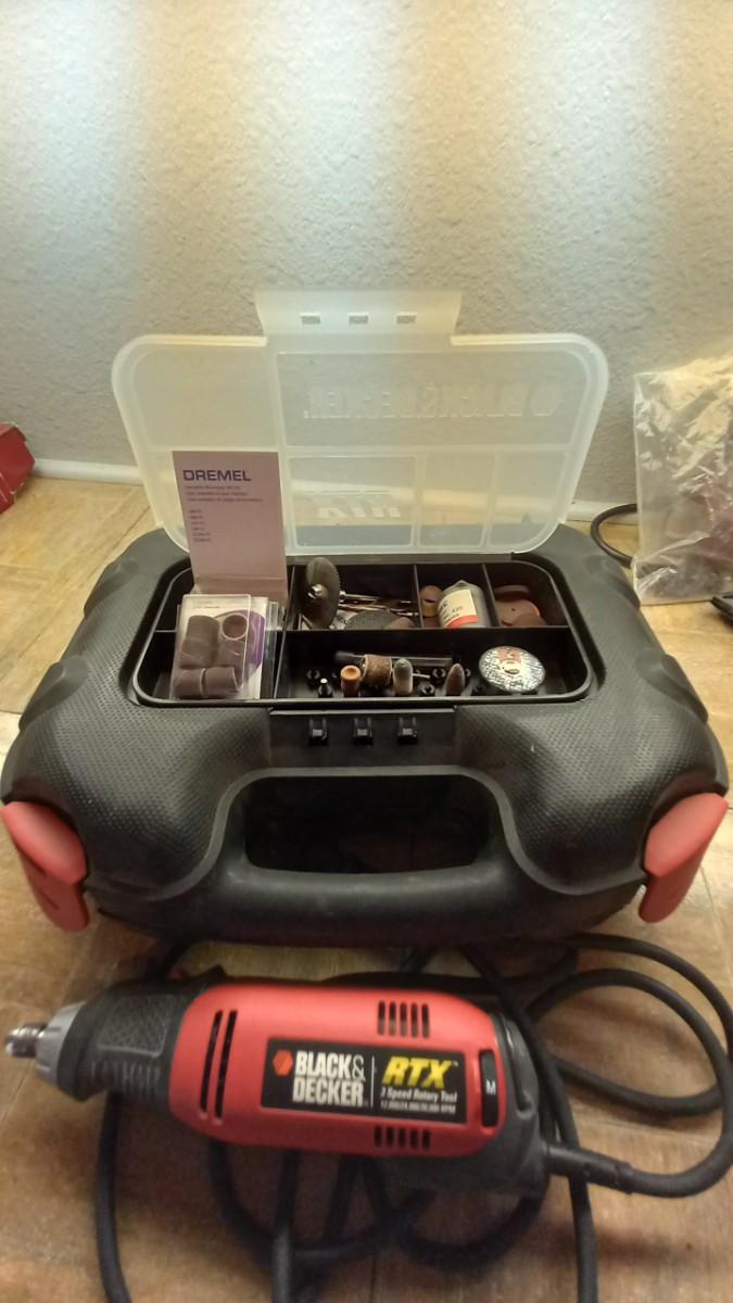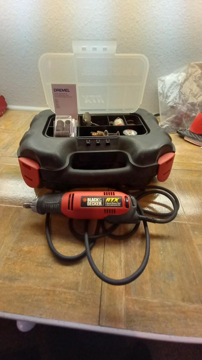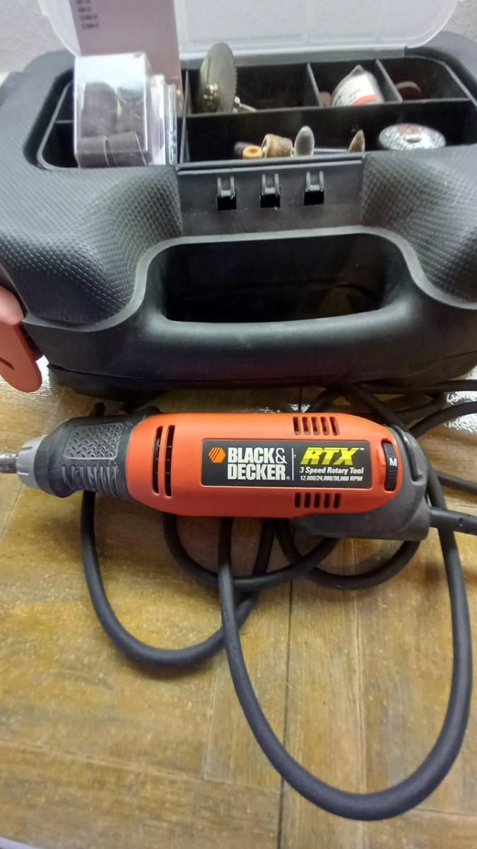 BL ACK & DECKER SANDER MODEL M5700 AND ROTORY TOOL ATX WITH ACCESSORIES IN CARRY CASE