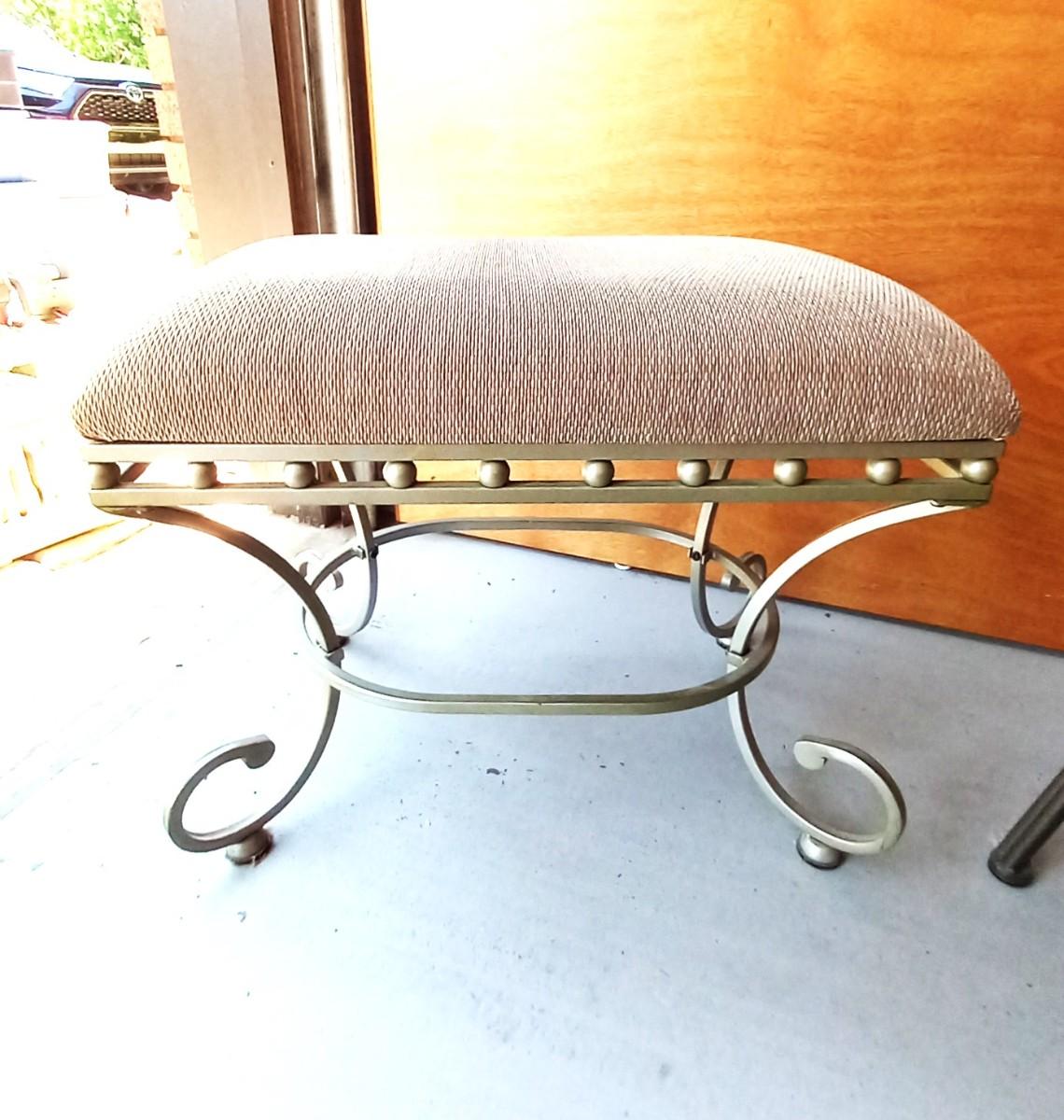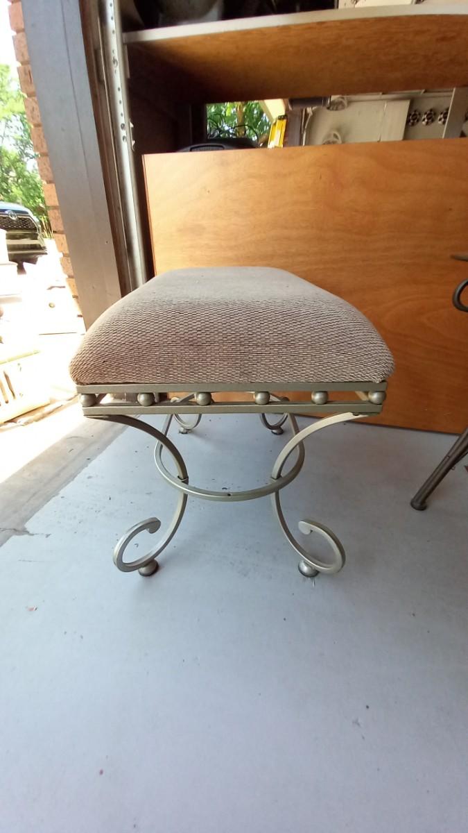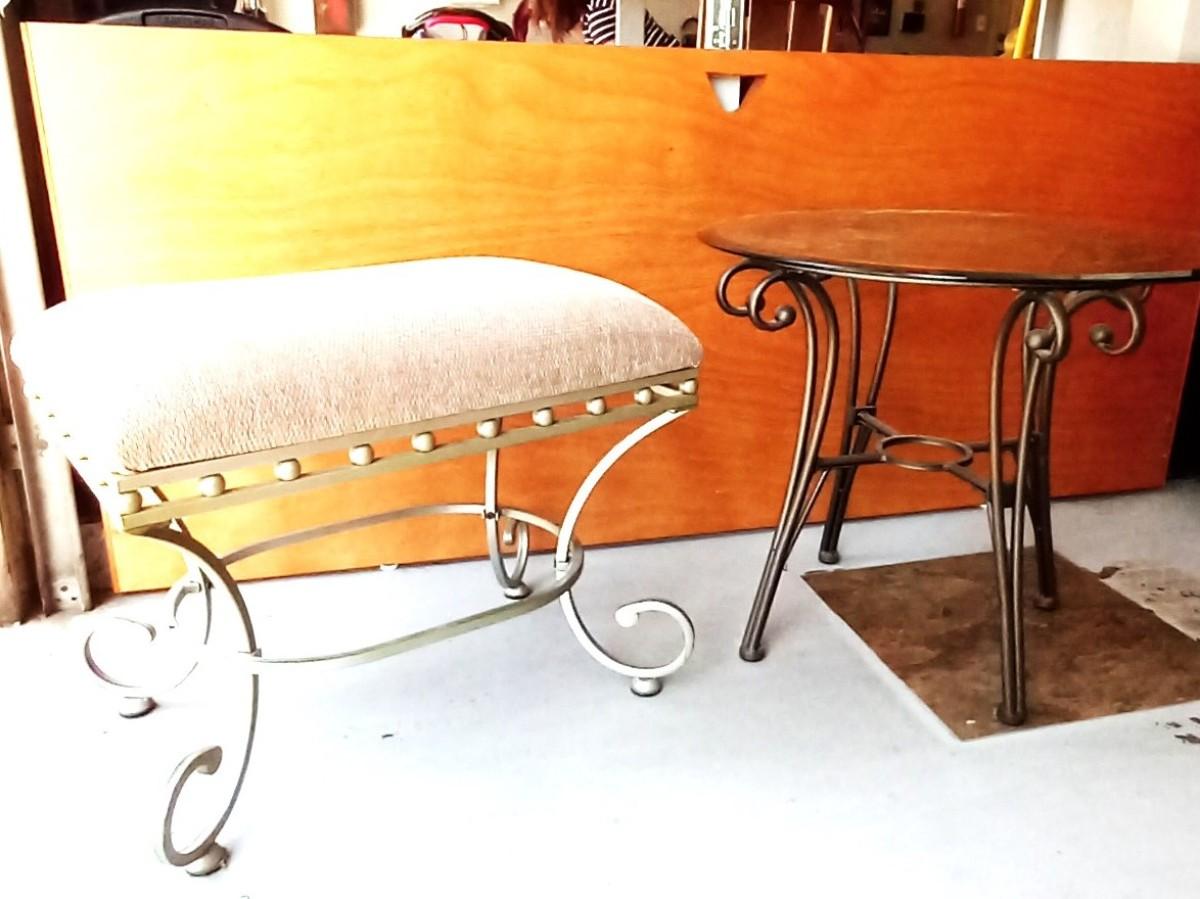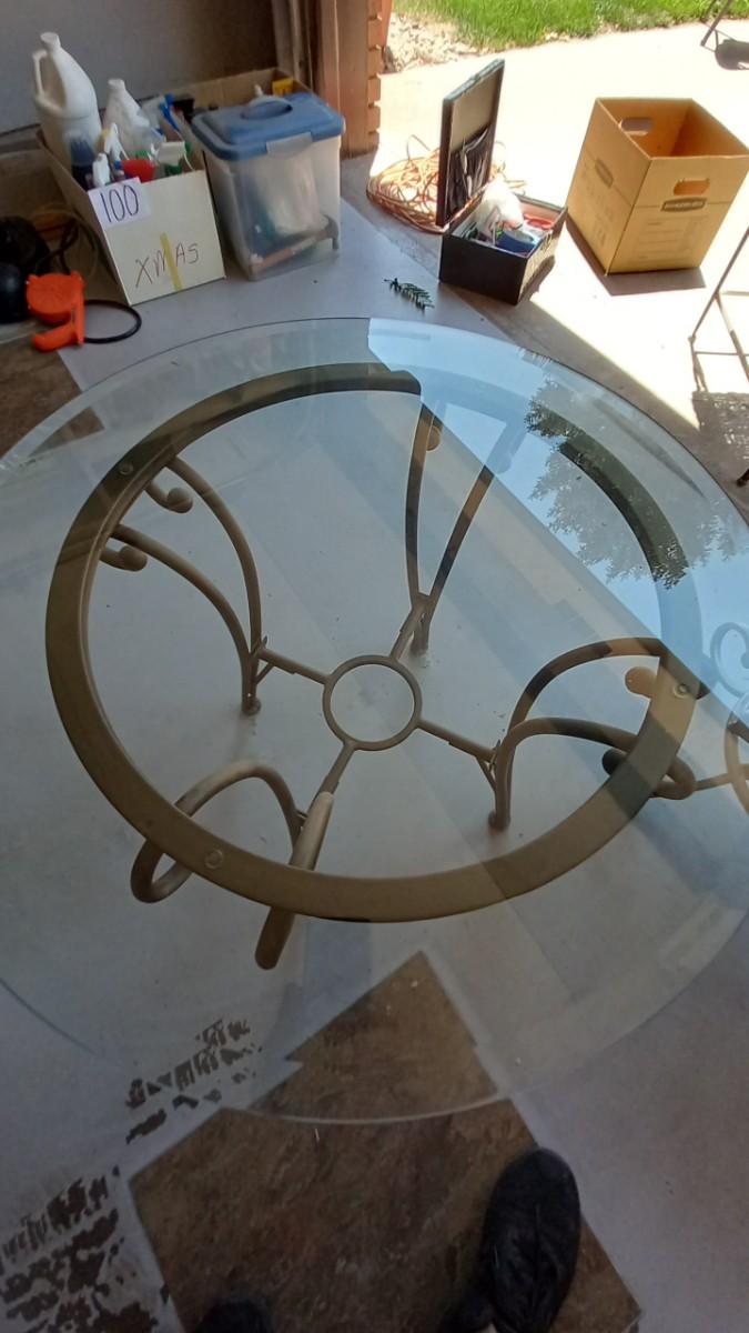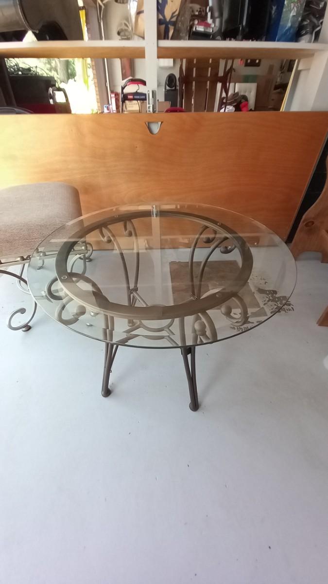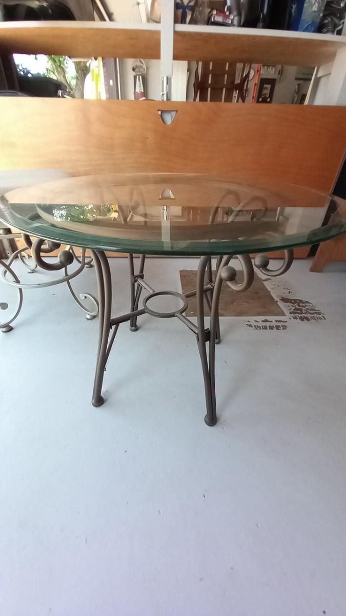 IRON BASED STOOL MEASURES 24X17X18 AND GLASSTOP SMALL TABLE IS 26" ROUND