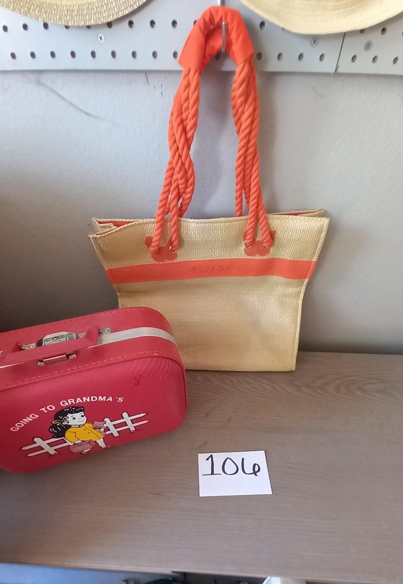 "GOING TO GRANDMAS" SUITCASE-SUMMER TOTE BAG AND 2 FLOPPY HATS