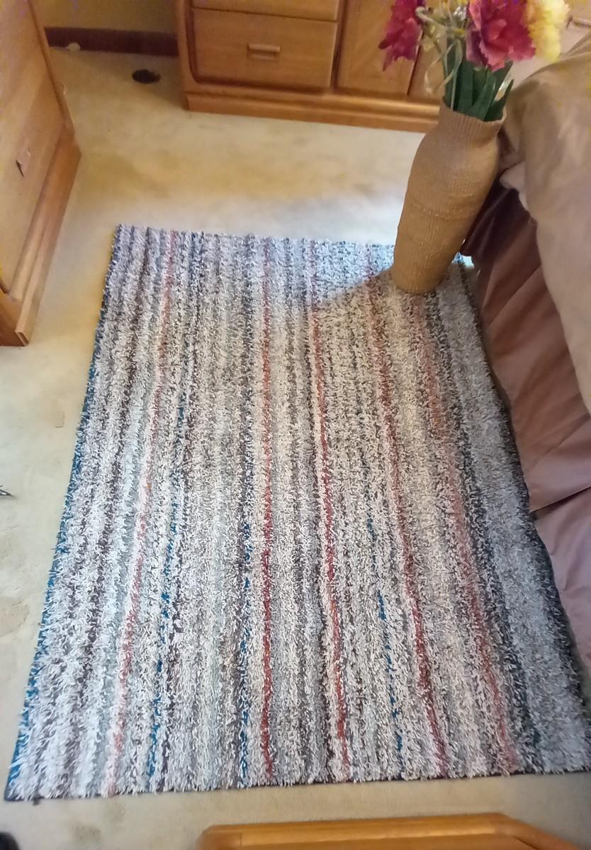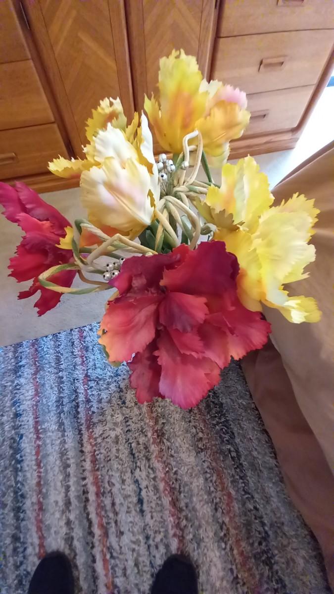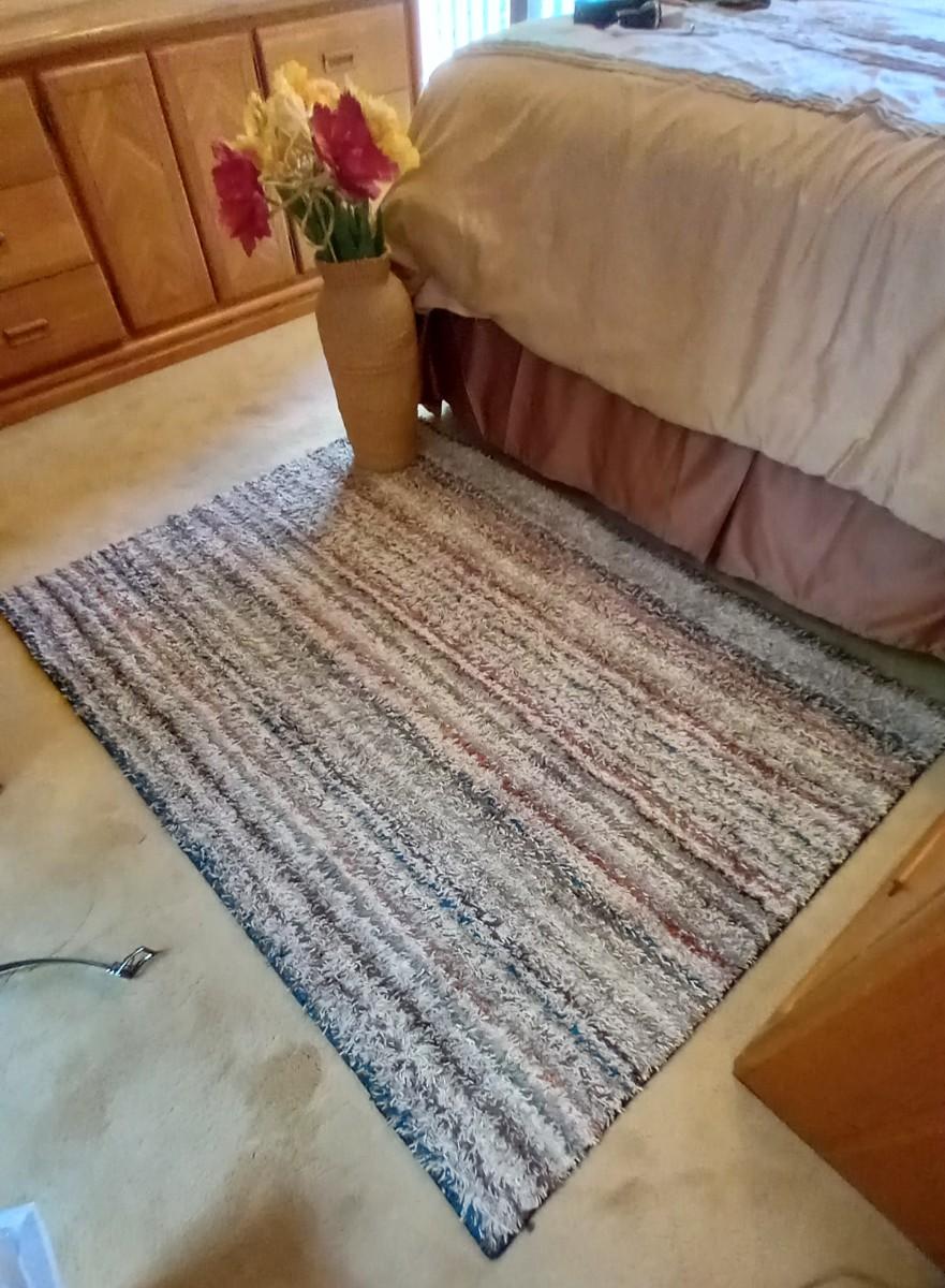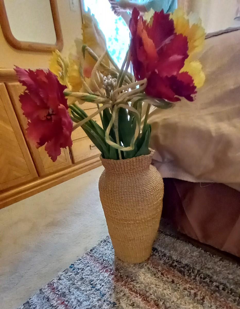 AREA RUG MEASURES 66X41 AND VASE WITH FAUX FLOWERS 22"