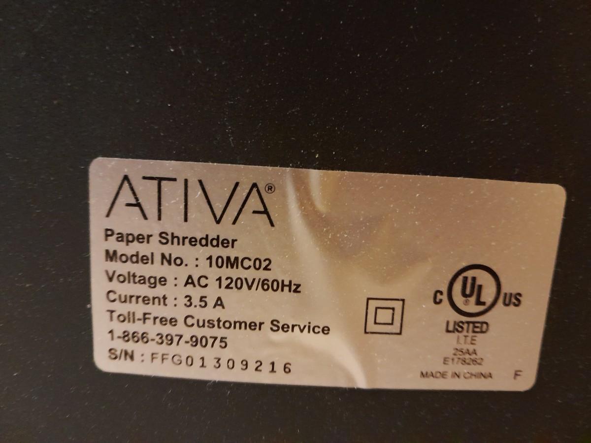 LARGE ATIVA PAPER SHREDDER MODEL 10MC02