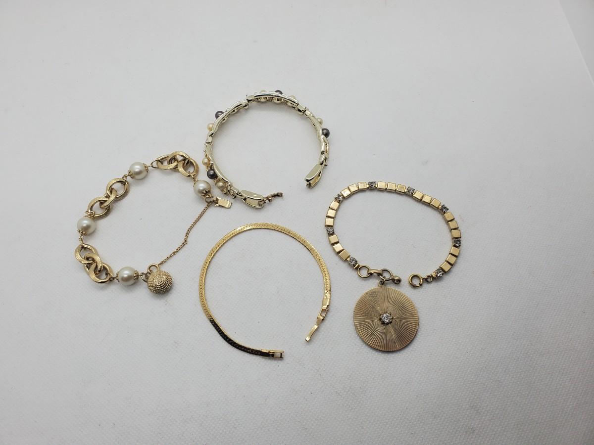 LOT 23G: Vintage Fashion Bracelets: Goldstones, Pearls & More