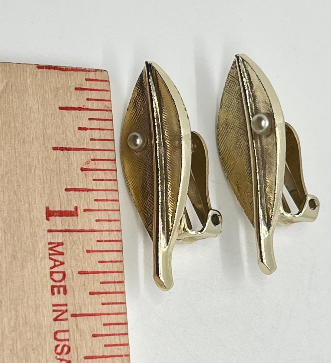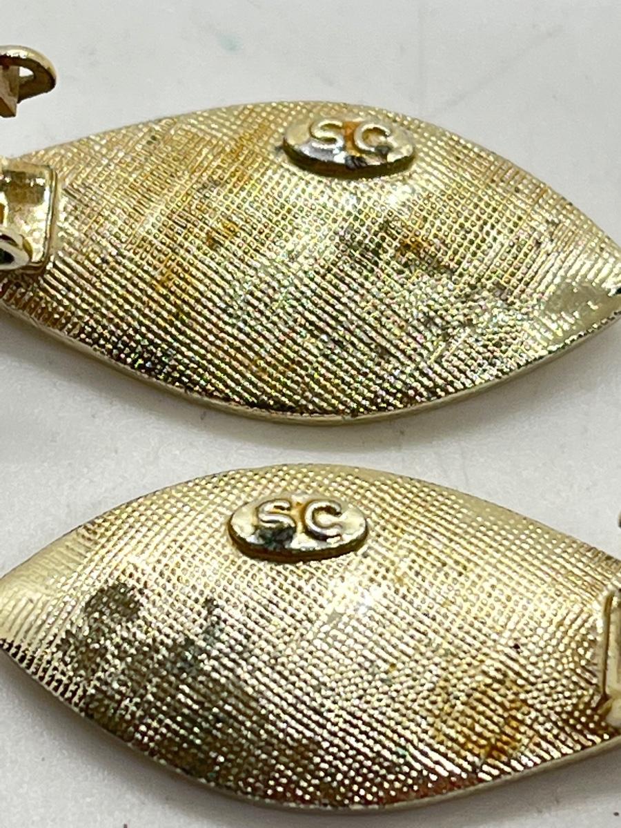 Signed (SC) Vintage Jewelry Set - Bracelet, Earrings, Pins - missing one faux pearl.