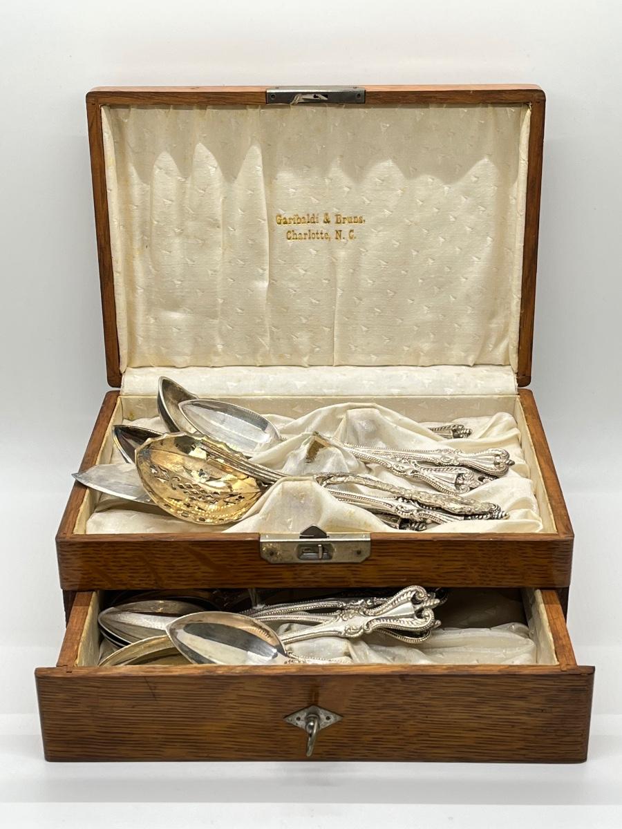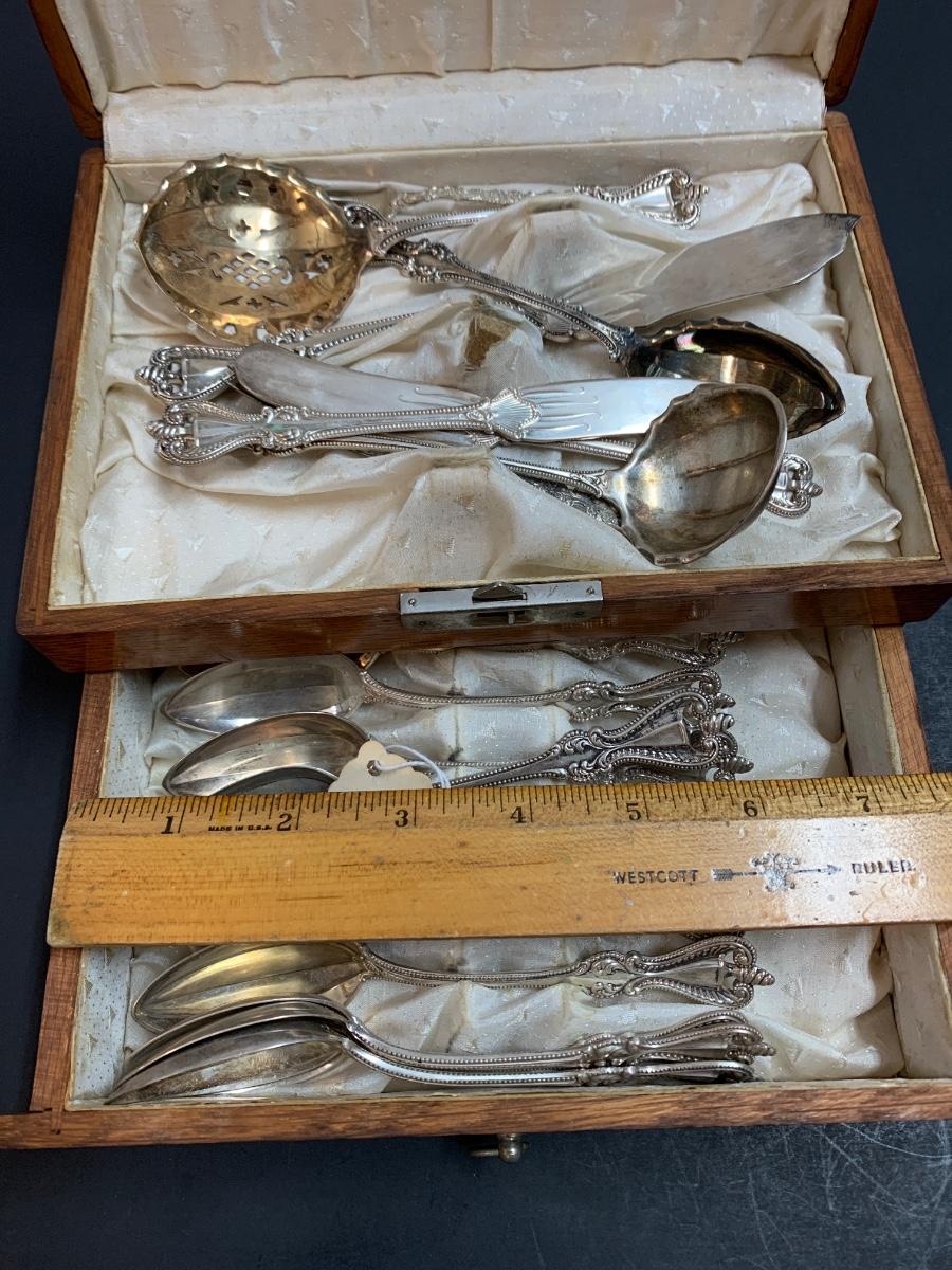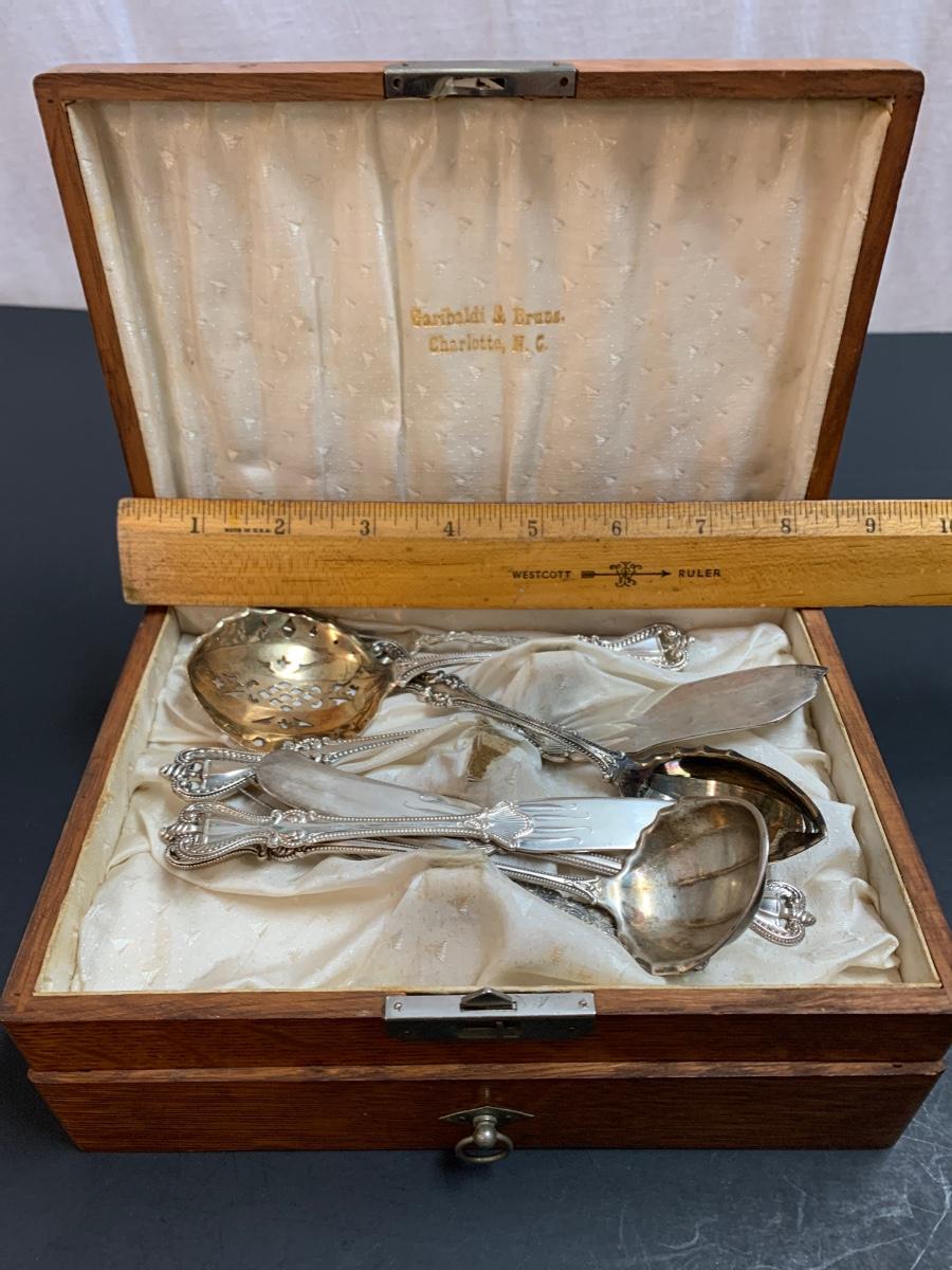 Vintage Sterling Silverware Set - Mostly PAT 1895 -Towle Old Colonial - in Garibaldi & Druns of Charlotte, N.C. box. Please see all pictures as they are the best representation of the items. The pictures show condition, measurements if taken, and what is included in the lot. Due to the large amount that we photograph and the time frame, we are not always able to take measurements. All items unless noted, are pre-owned and have been used. If you purchased furniture, you must bring help. We do not allow one person to carry large furniture out on their own. Bring help, tools and a truck for the safety of our client’s homes, and your personal safety. Any damages that result to the property including walls, and floors due to moving of the furniture will be charged to the buyer. Company policy. Thank you.