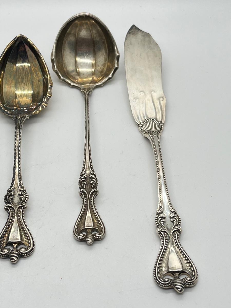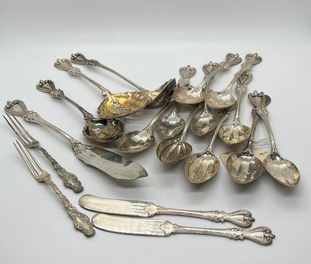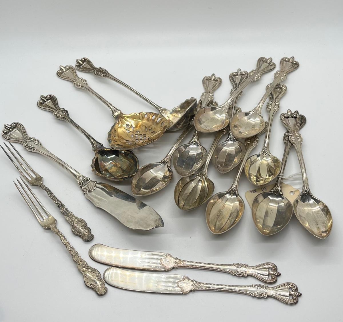 Vintage Sterling Silverware Set - Mostly PAT 1895 -Towle Old Colonial - in Garibaldi & Druns of Charlotte, N.C. box. Please see all pictures as they are the best representation of the items. The pictures show condition, measurements if taken, and what is included in the lot. Due to the large amount that we photograph and the time frame, we are not always able to take measurements. All items unless noted, are pre-owned and have been used. If you purchased furniture, you must bring help. We do not allow one person to carry large furniture out on their own. Bring help, tools and a truck for the safety of our client’s homes, and your personal safety. Any damages that result to the property including walls, and floors due to moving of the furniture will be charged to the buyer. Company policy. Thank you.