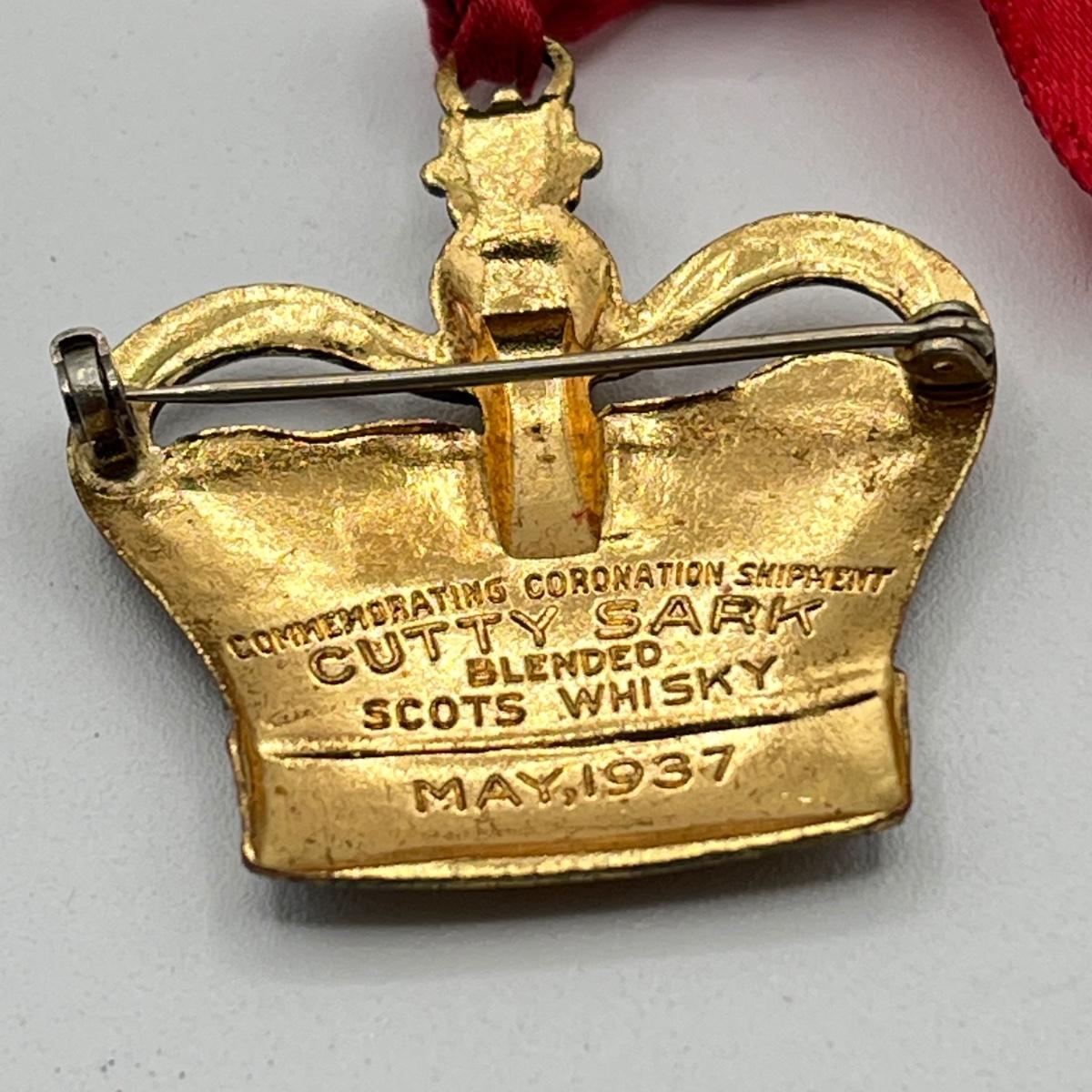 LOT 74F: King George VI Coronation Commemorative Pins - 1937 Cutty Sark Whisky - Two - One w/ Ribbon, One Without