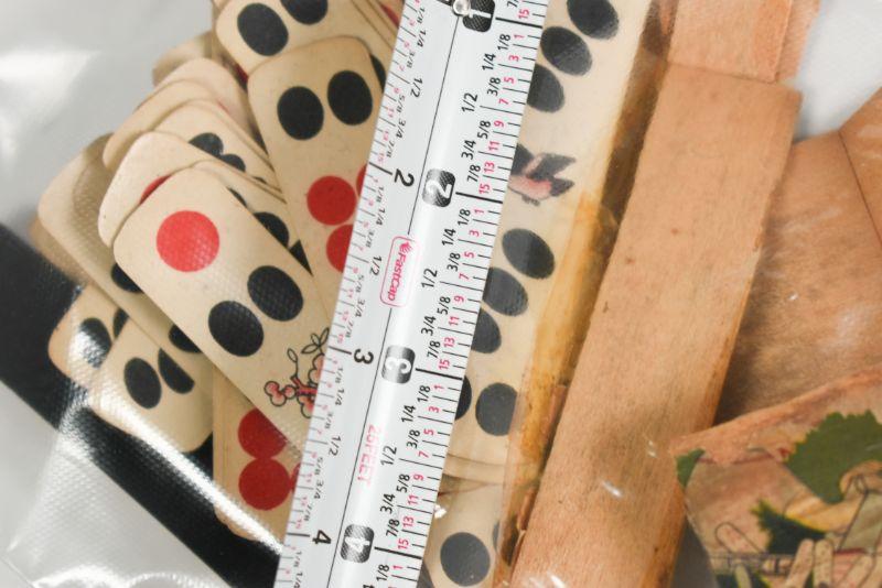 Vintage Chinese paper dominoes. Box is in poor condition. Not sure if all pieces are there, but they are in good condition. **Please read Terms and Conditions before placing a bid. Pick up is Sunday, December 22 from 11am to 3pm or Monday, December 23 from 4pm-7pm in Mantua, NJ. All sales are final. All sales are as is, where is. Please review all photos. Props are not included. Measurements are approximate.