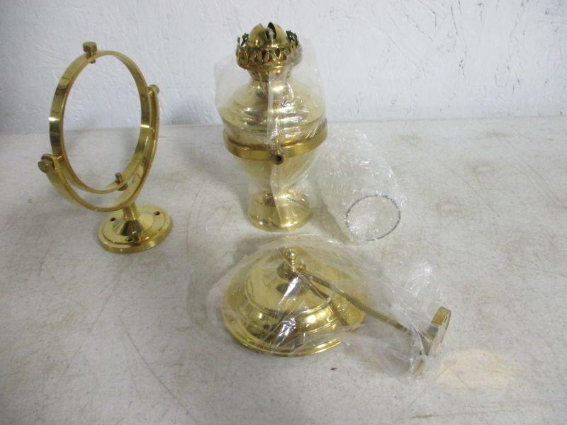 Lot 75 - Lamp Solid Brass Oil Lamp W/ Gimbal