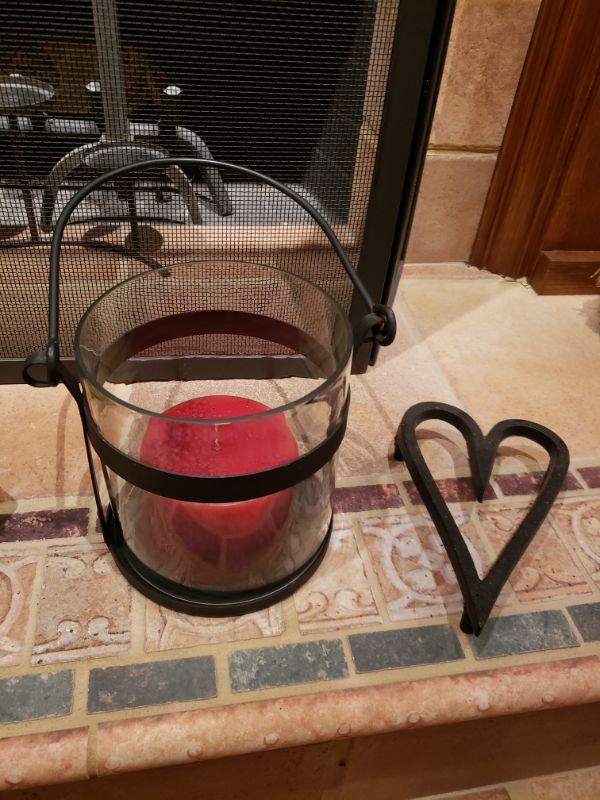 Deco. Heart: 5"x8"x1.5" ... candle holder: 7" tall
