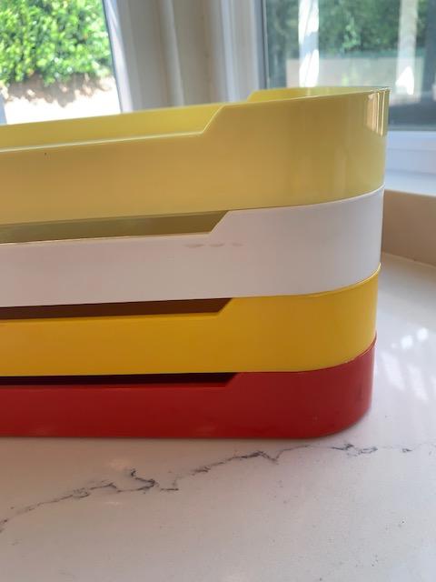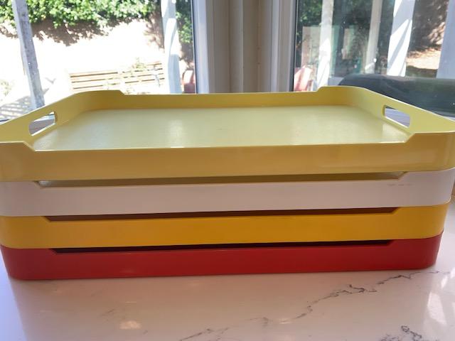4 Plastic Serving Trays by Ingrid Ltd, Chicago.
