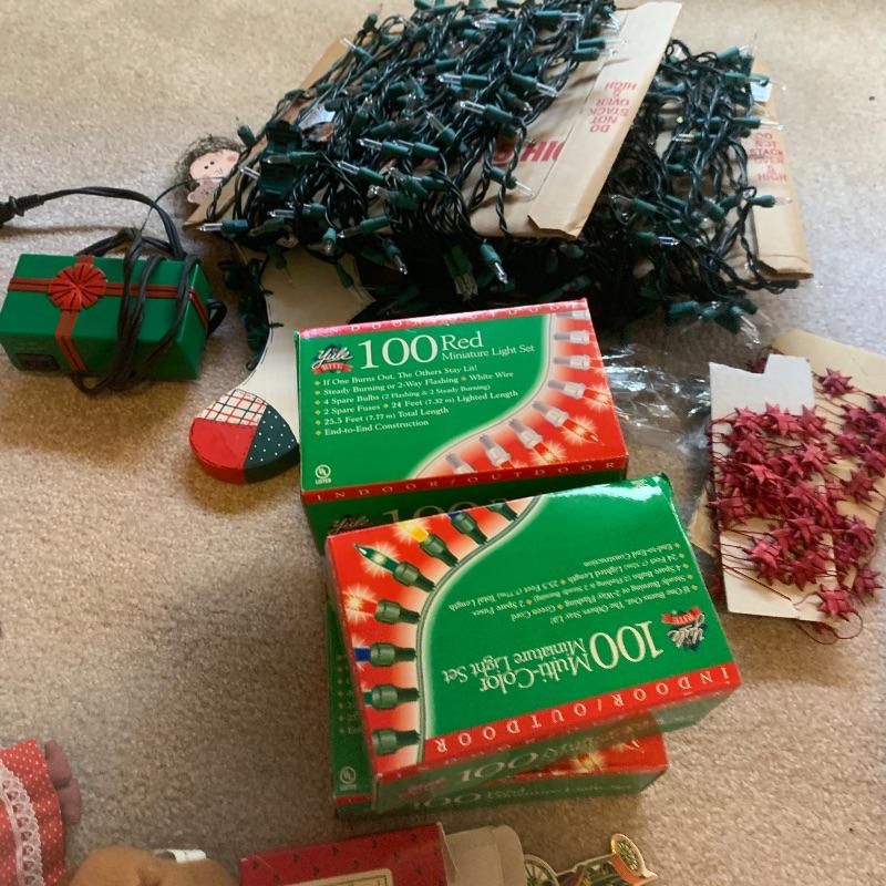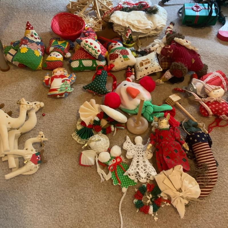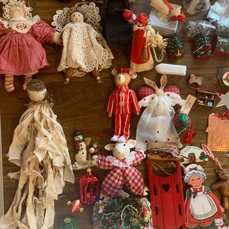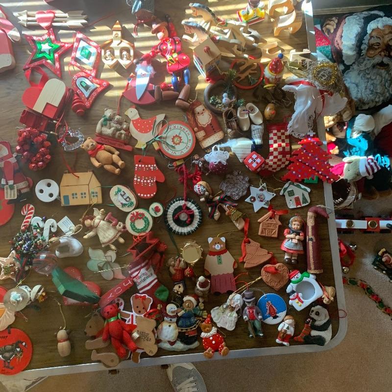For all you last minute Holiday decorators...Here’s some amazing Christmas Ornaments and Decorations. Assorted ornaments, clay, mercury glass, ceramic, needlepoint included, village pieces, rag dolls and an assortment of Christmas lights. Table in lot is not included. Shipping available.