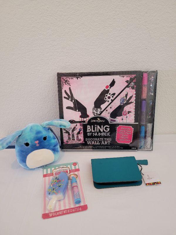 Lot 75: New  Wallet, Lip Gloss, Plushie and Wall Art Set