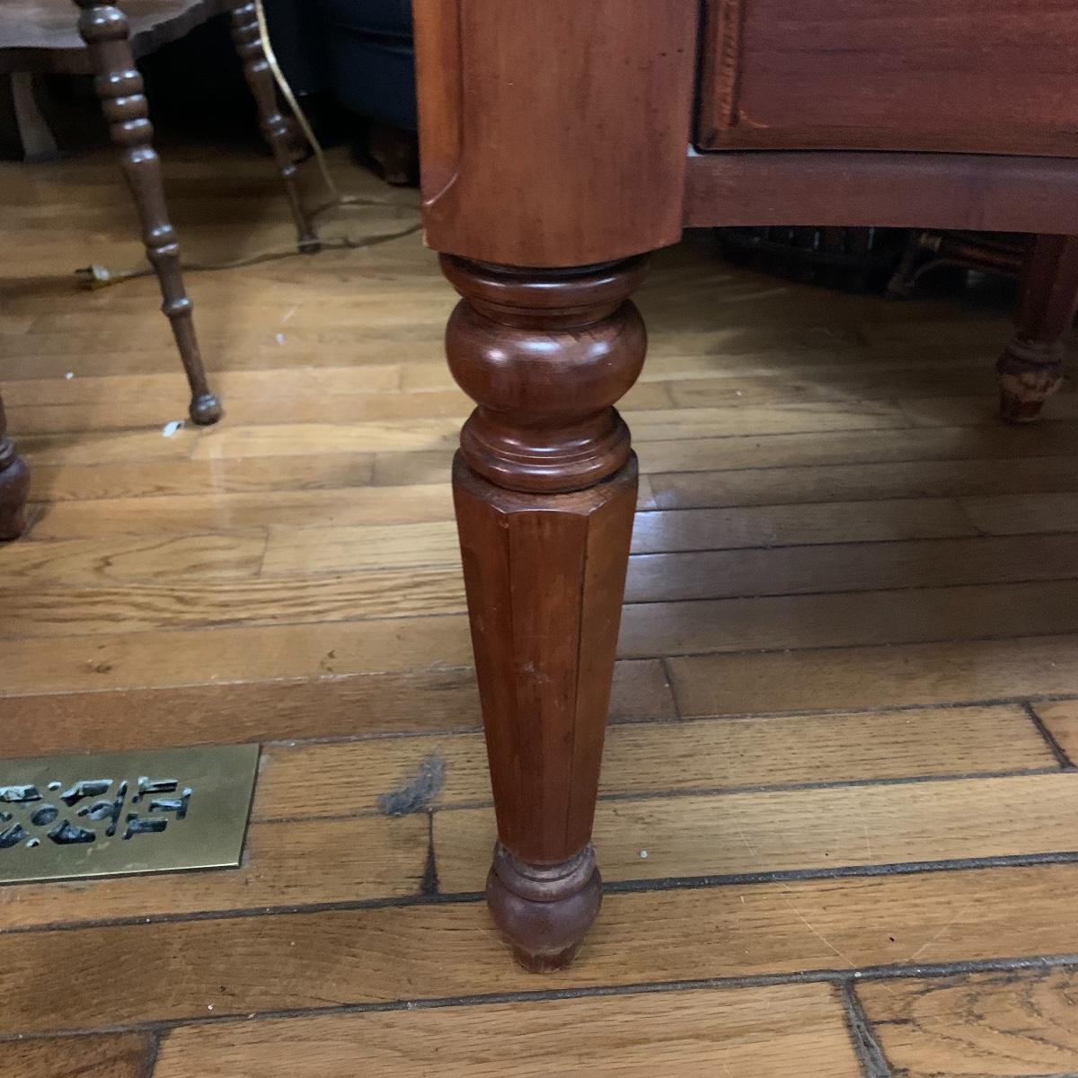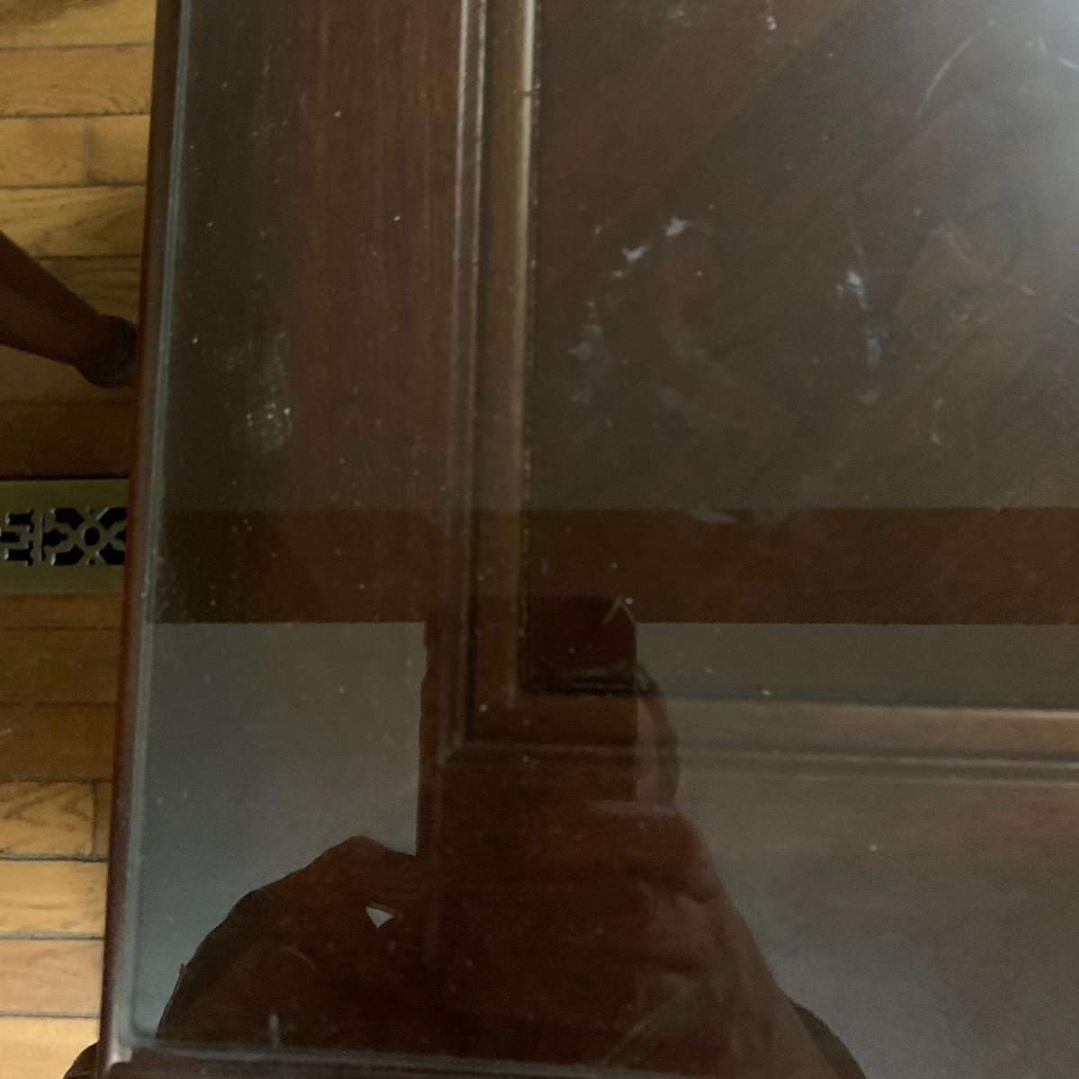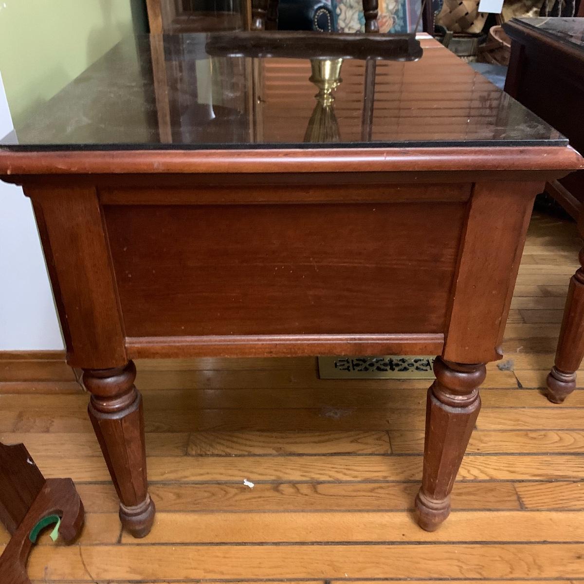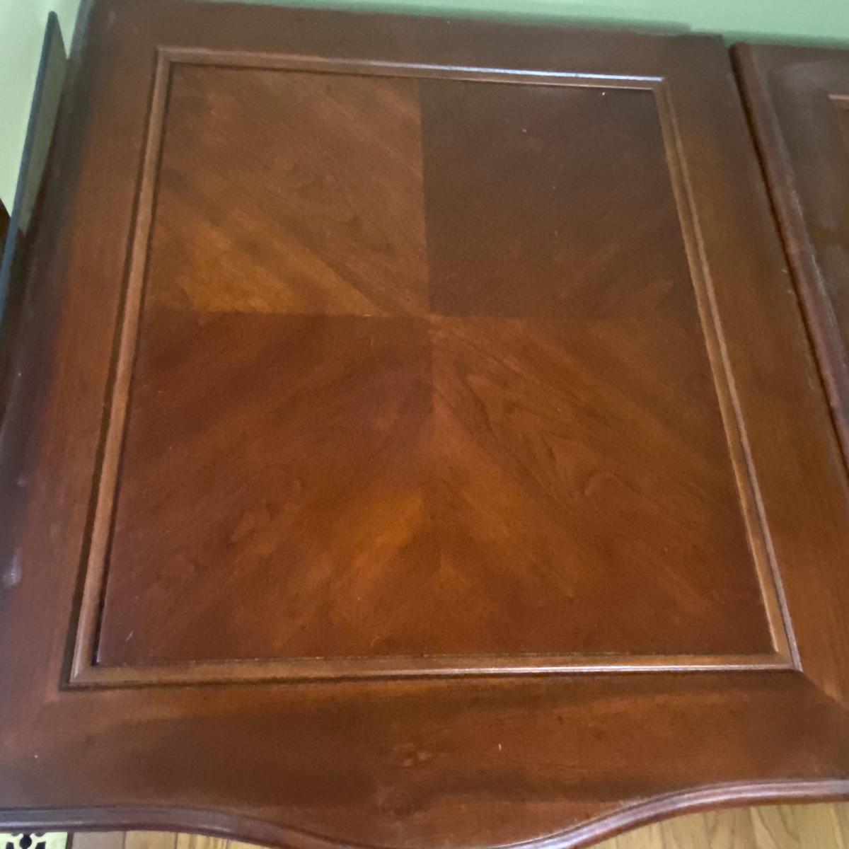 Add these end tables to your living room for a touch of elegance. This pair of cherry tables are manufactured by Riverside Furniture of Fort Smith AR. Both have removable glass, two drawers and measure 22” Wide X 24” tall X 25” deep. They’re both in good condition. Local pickup only.