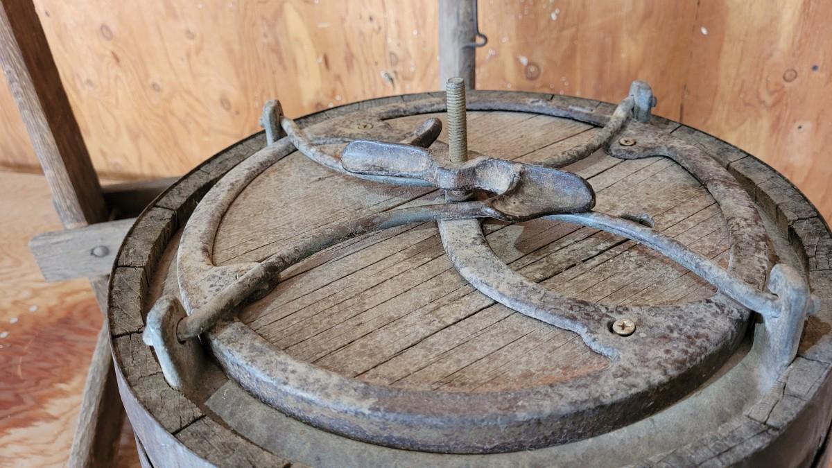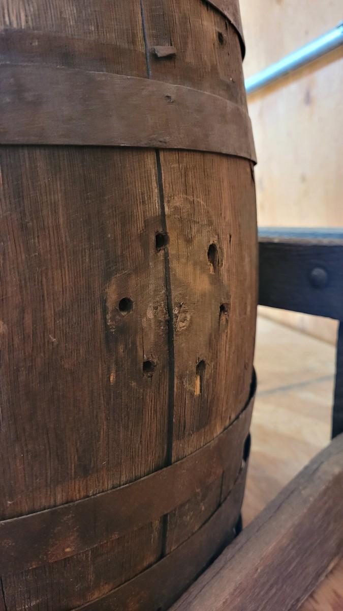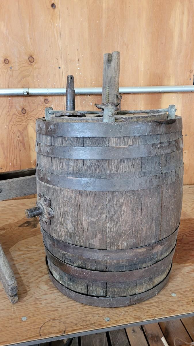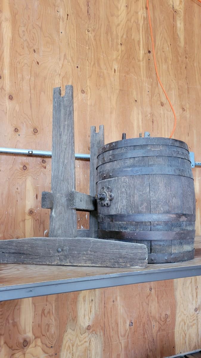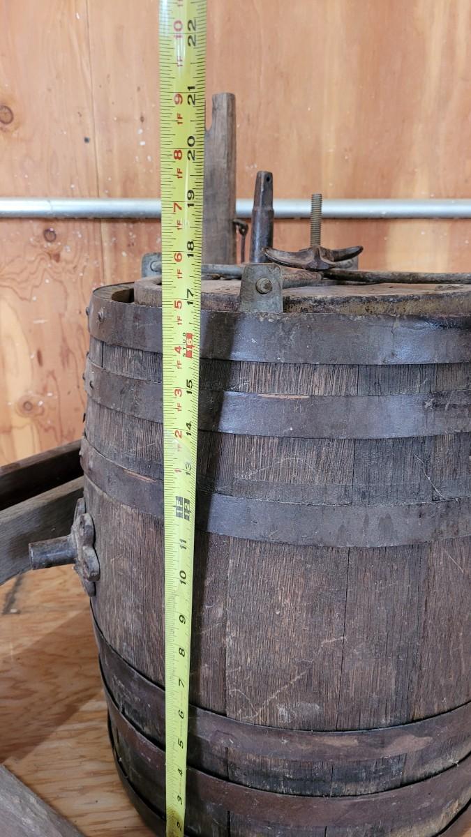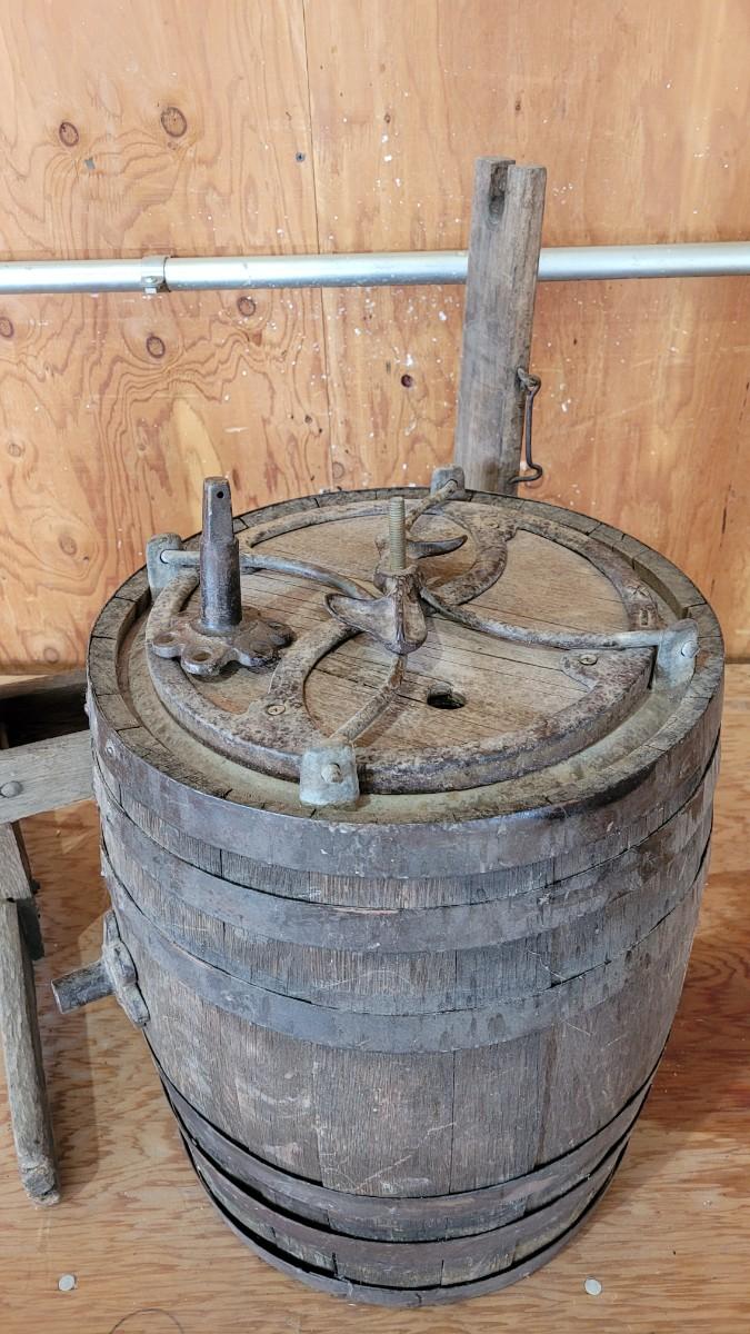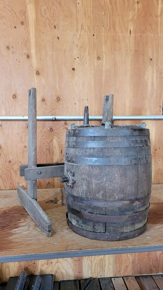 Lot 75: Antique Barrel Keg Butter Churn with Original Wood Stand & Handle (photo of Handle will be added)
