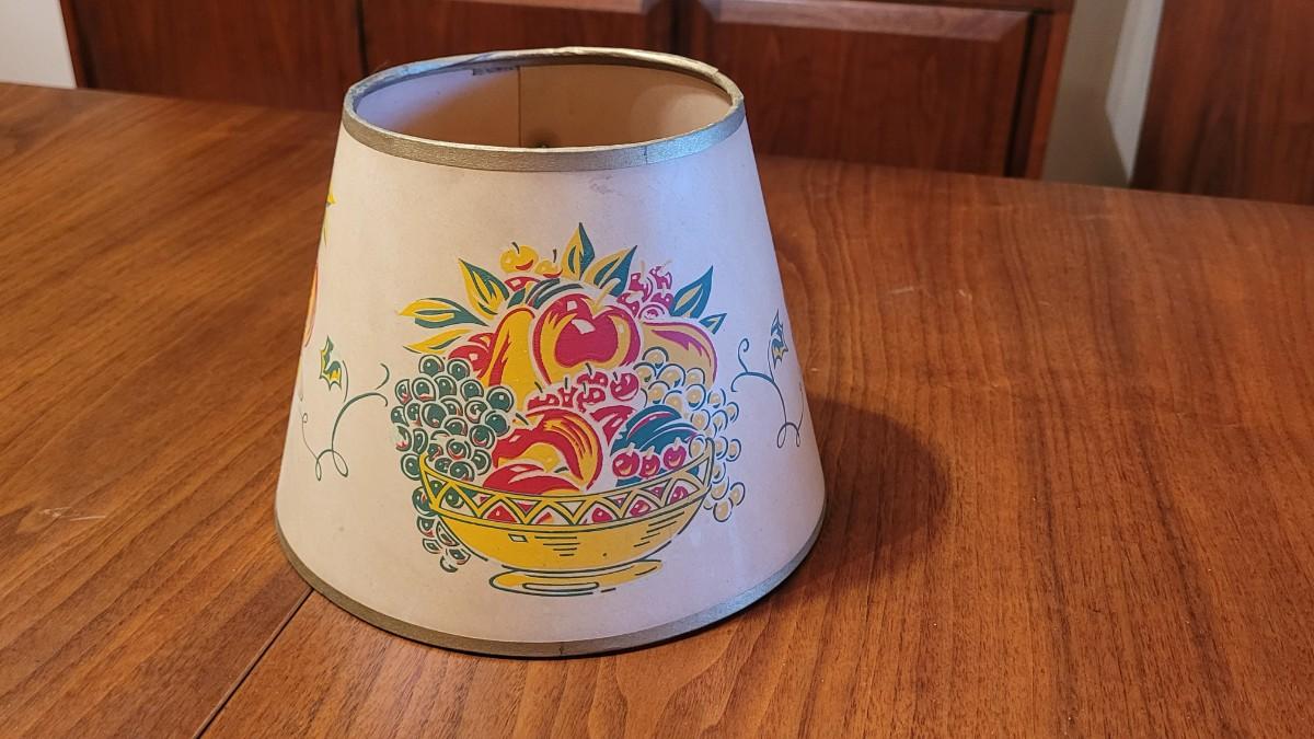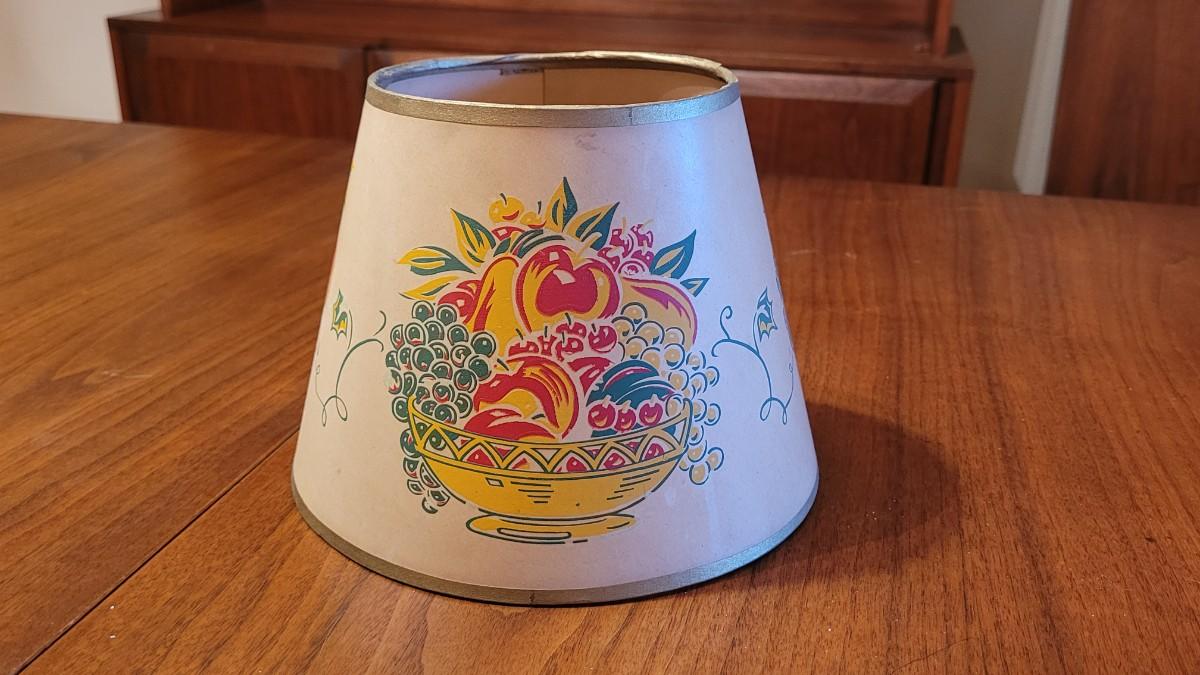 Lot 70: Antique/Vintage Small Paper Lamp Shade with Fruit Bowl