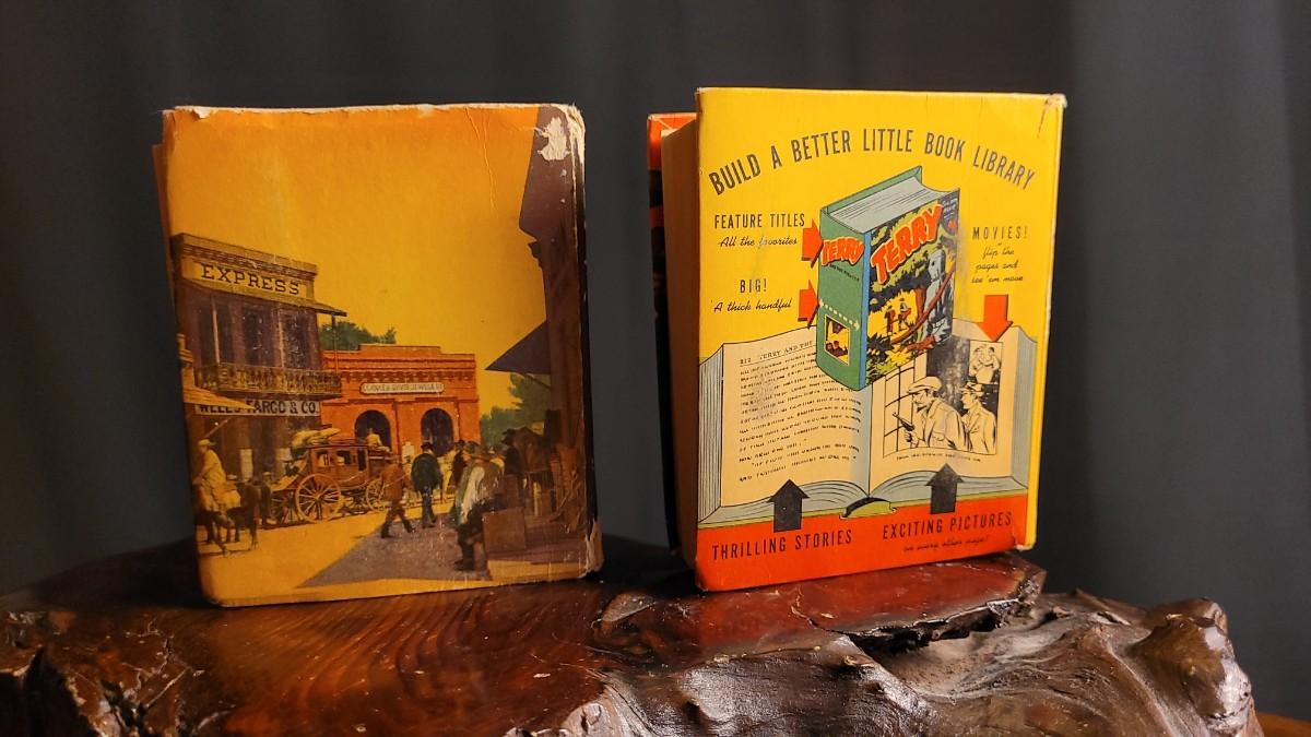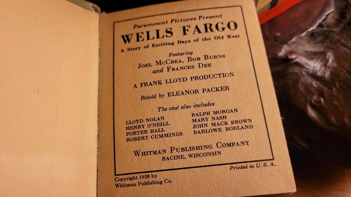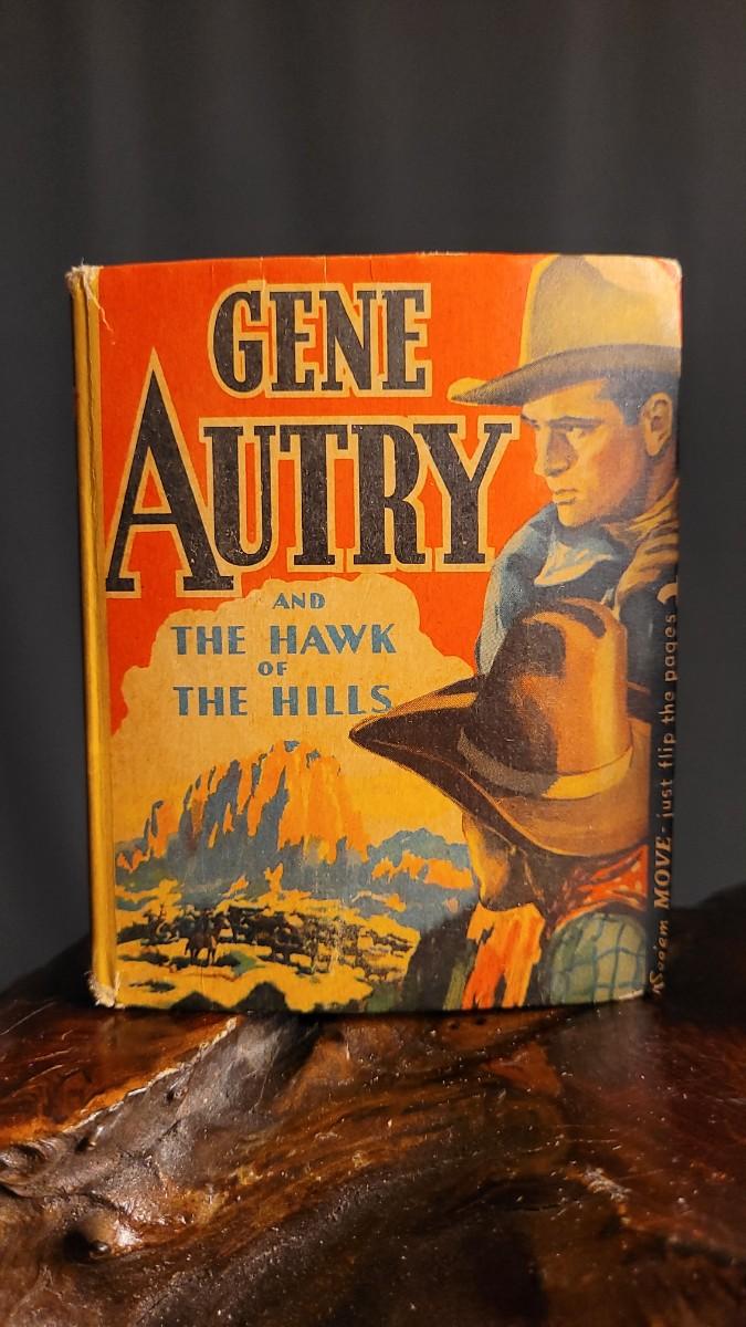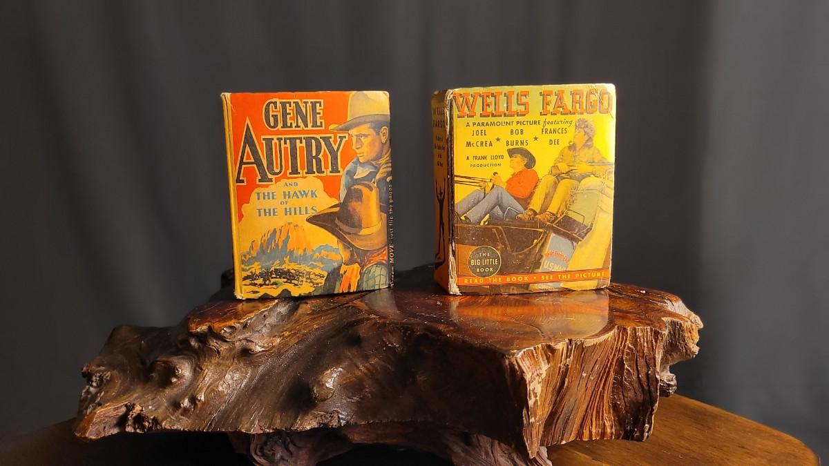 This lot features a 1938 WELLS FARGO Paramount Motion Picture Book + 1942 Gene Autry and THE HAWK OF THE HILLS. Both books in nice condition for age.