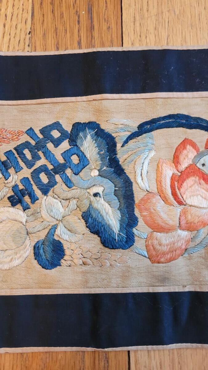 Lot 75: Antique Chinese Embroidery Silk Panel - Flowers