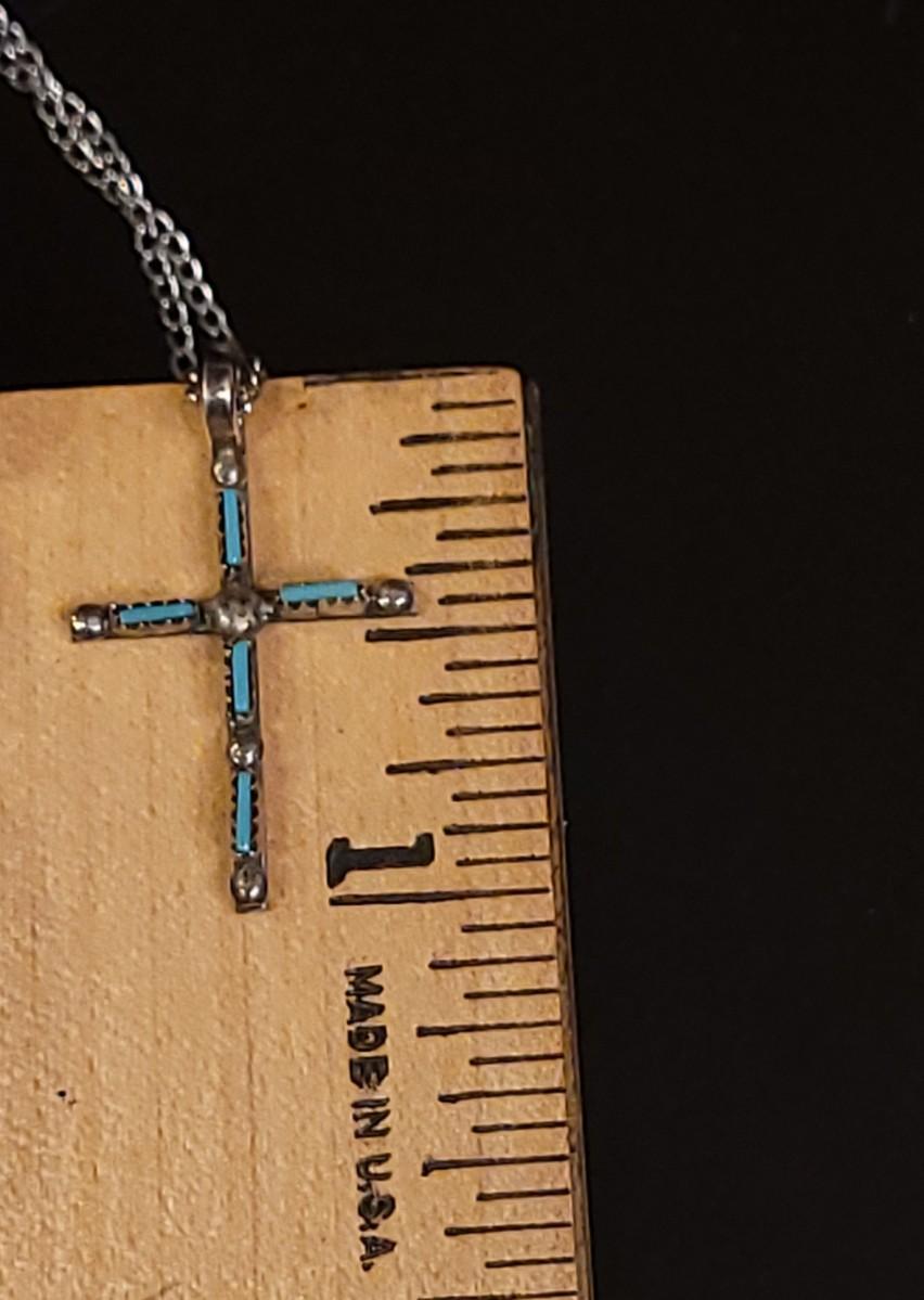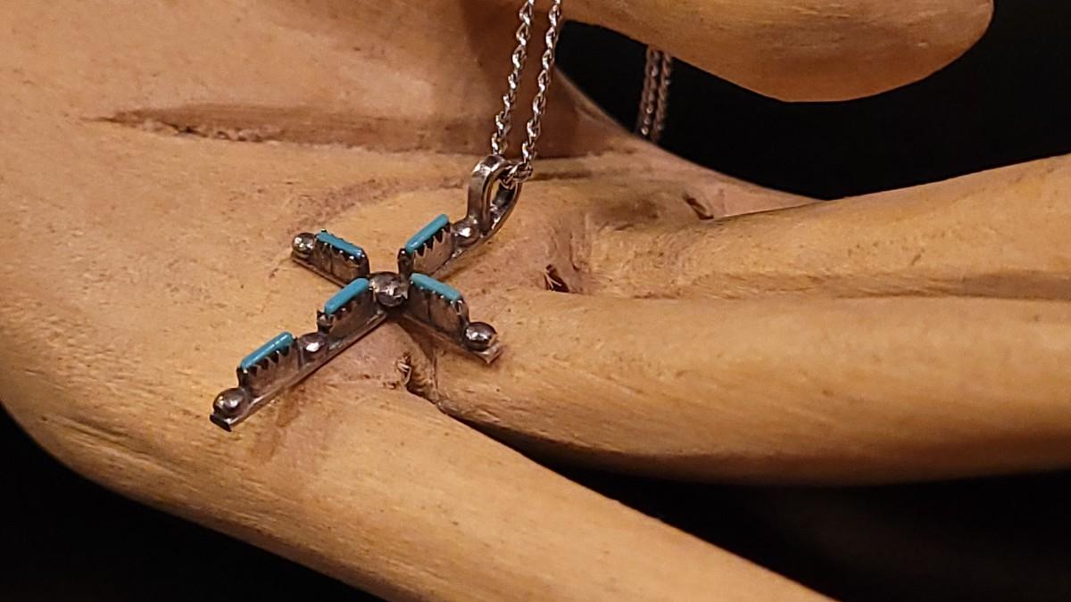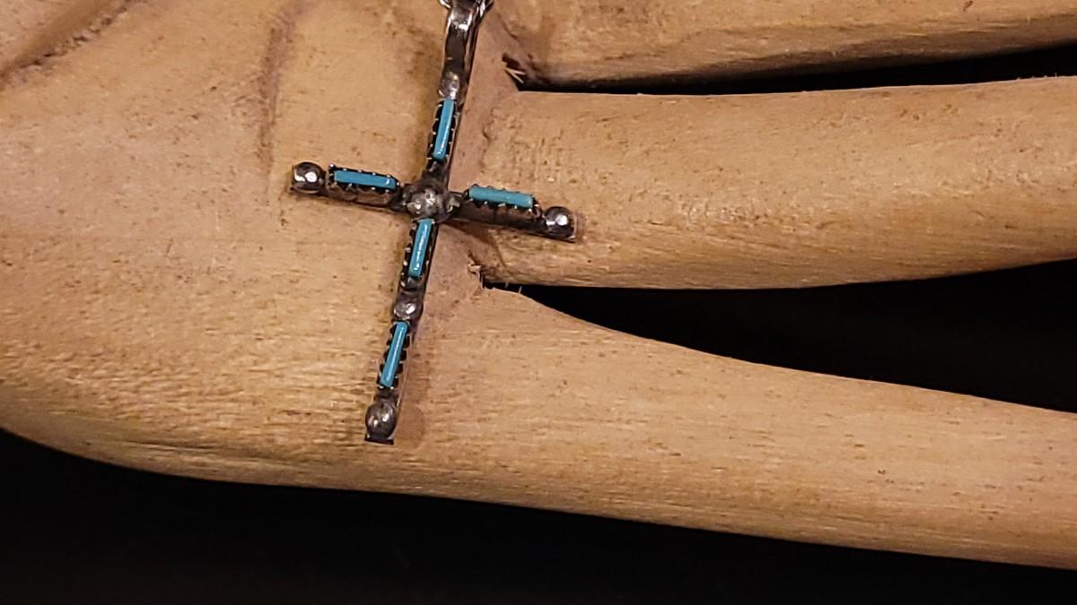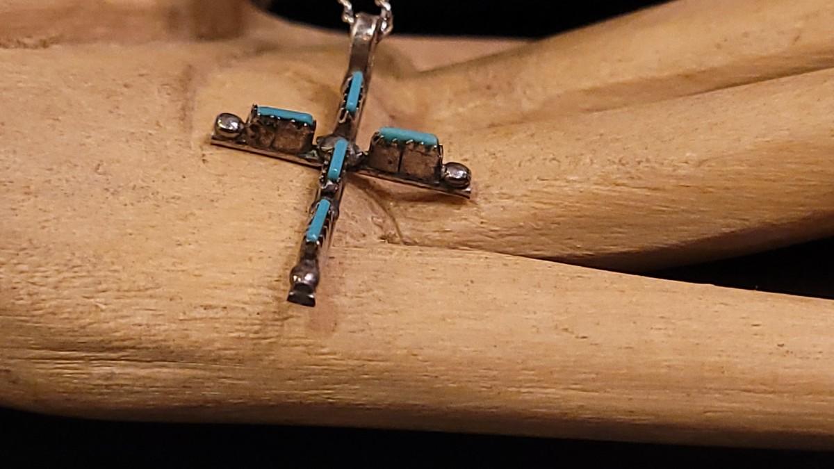 Lot 75: Vintage Native American Sterling & Turquoise Cross and Sterling Necklace