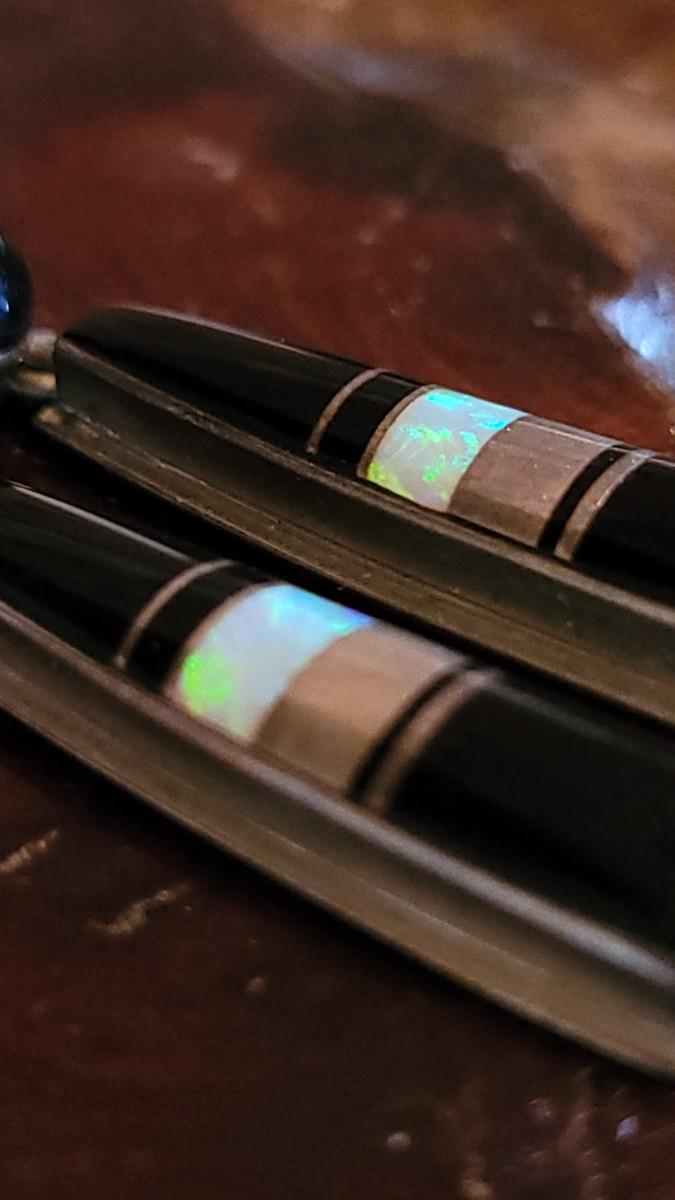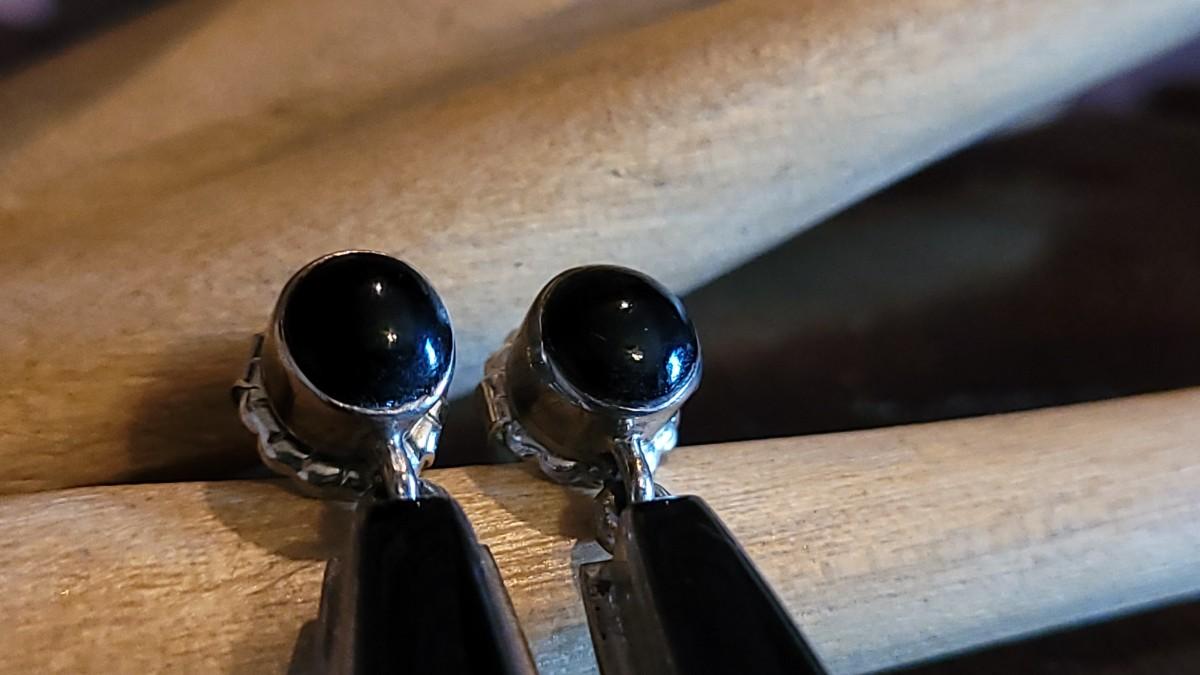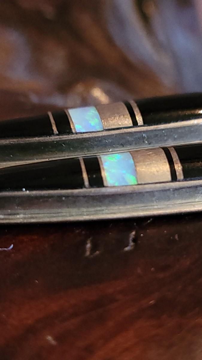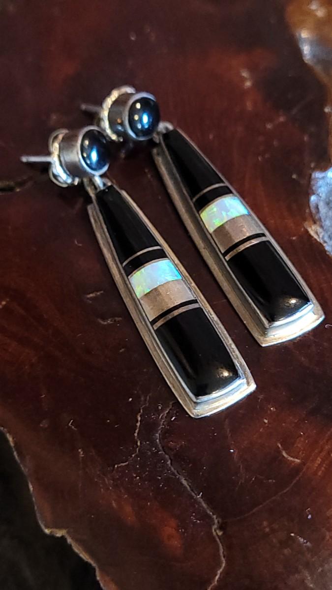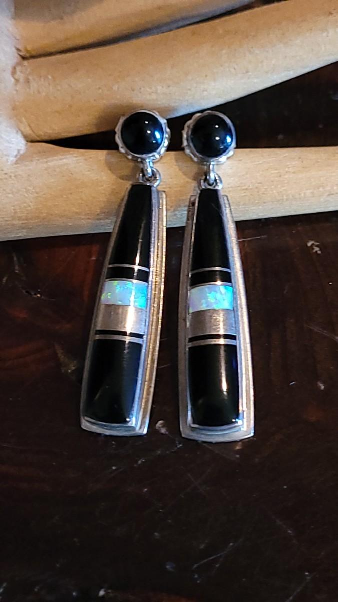 The opal glows against the sterling and Onyx. They are marked on the backside.
