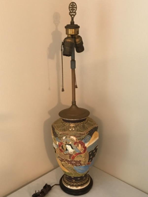 Antique Japanese Satsuma Lamp. Measures 29-1/2” tall. Does not come with lampshade.