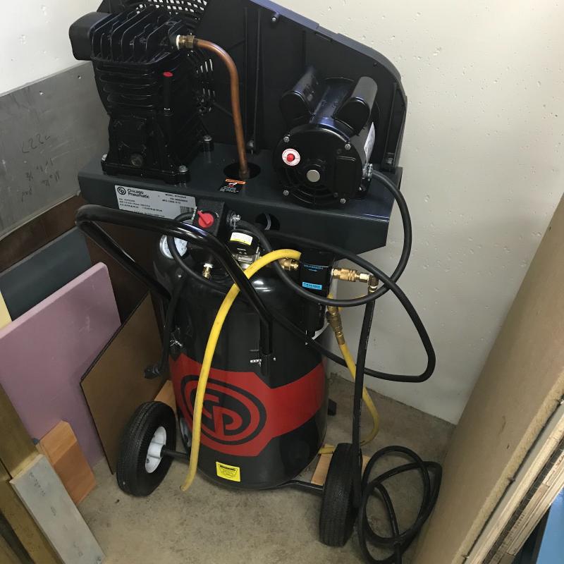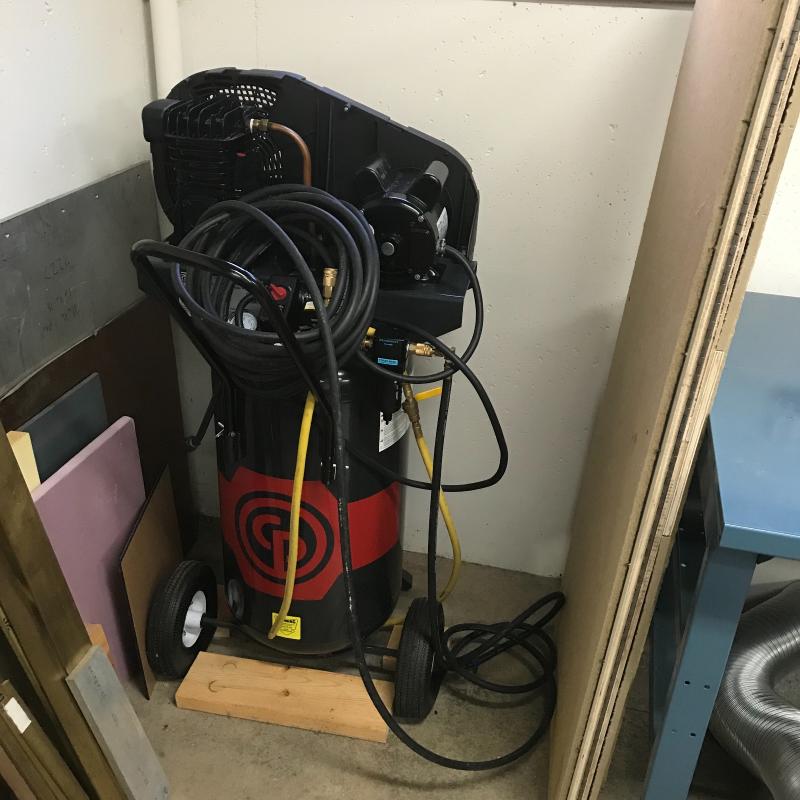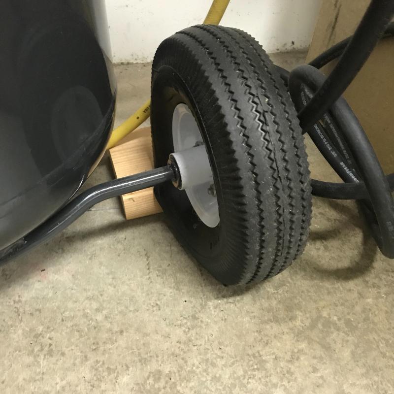 In good condition 2hp 115 volt phase 1 air compressor with insulation screen to create noise barrier. Tires are flat but seem to be good. (May want to bring a pump or adaptor for compressor to pump tires to move). This item is heavy and will have to go around house and up a small hill to driveway. You will need help to move it. Local pick up in Asheville, NC only.