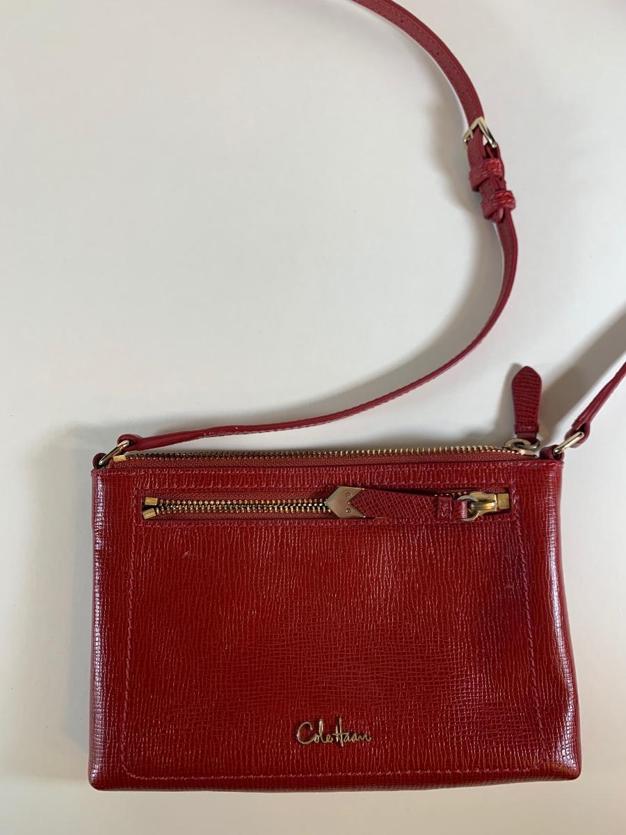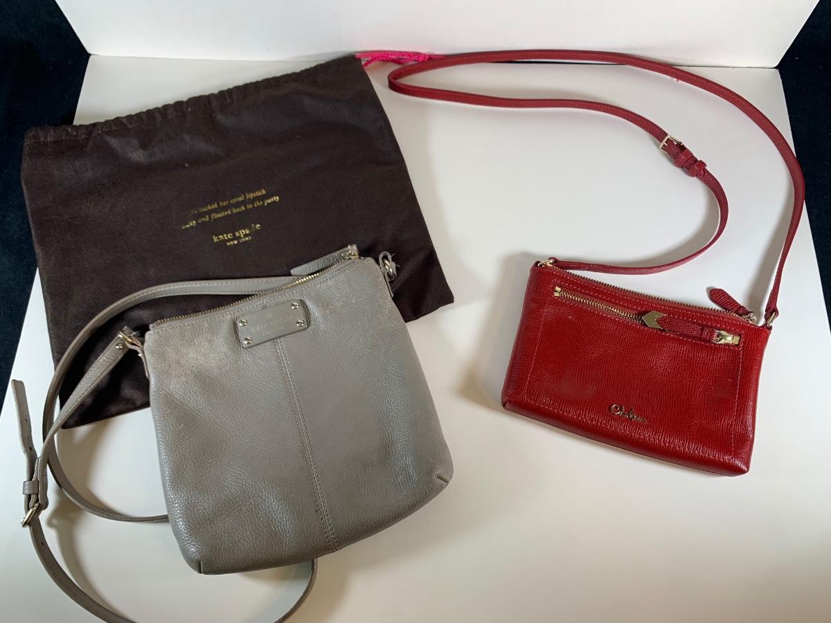 Cole Hahn small red leather bag and Kate Spade gray leather cross-body bag