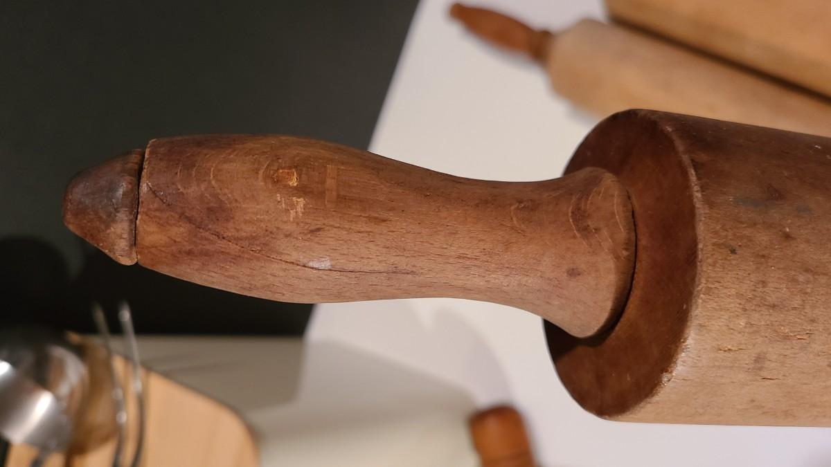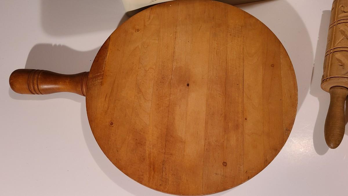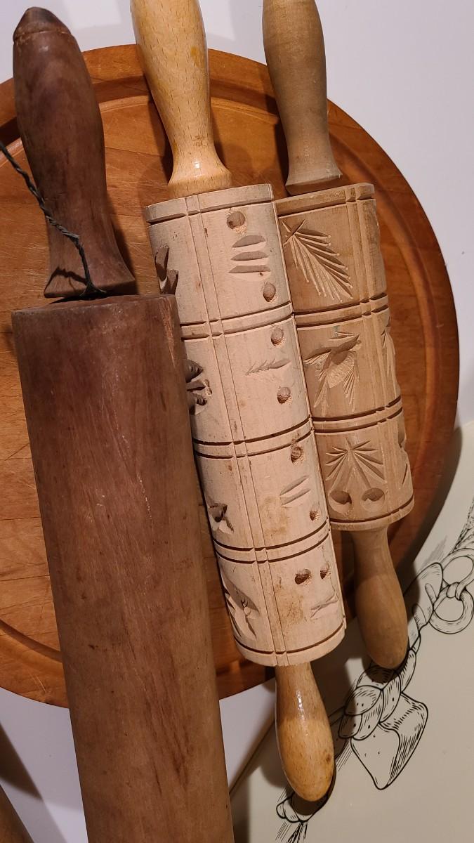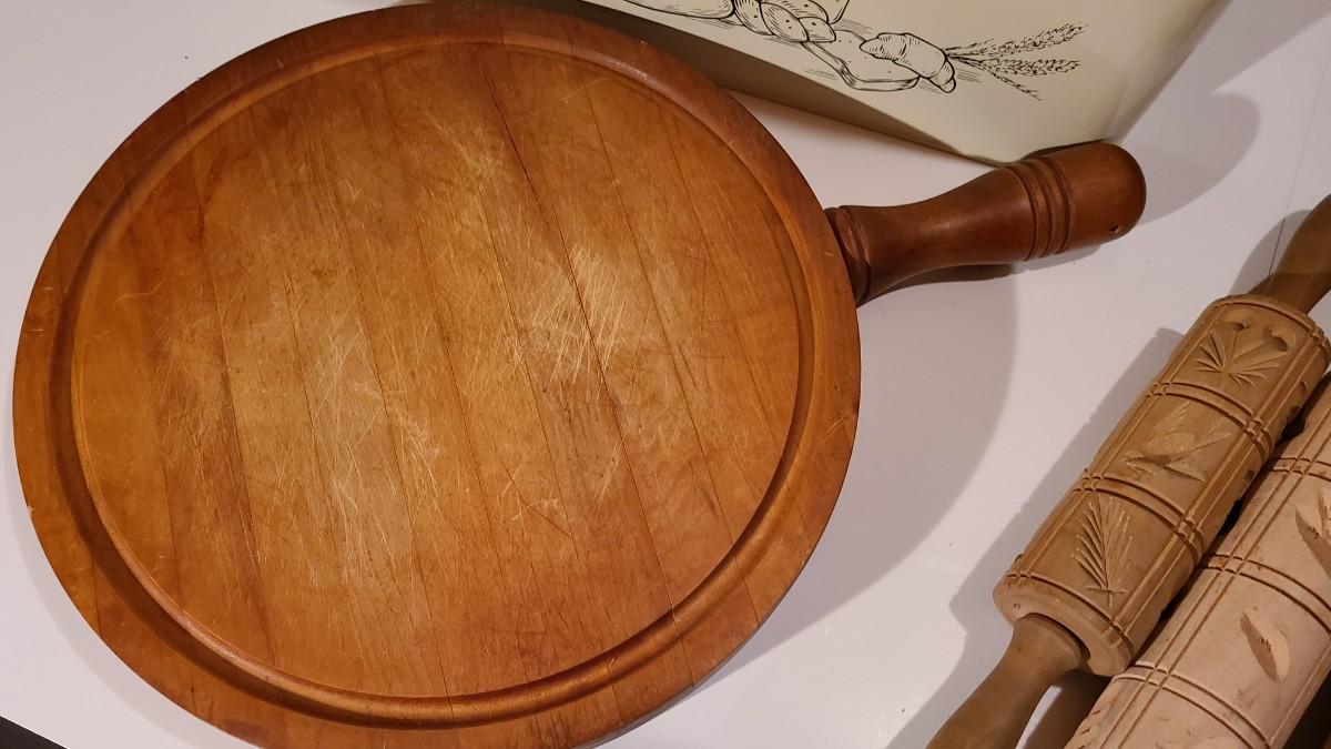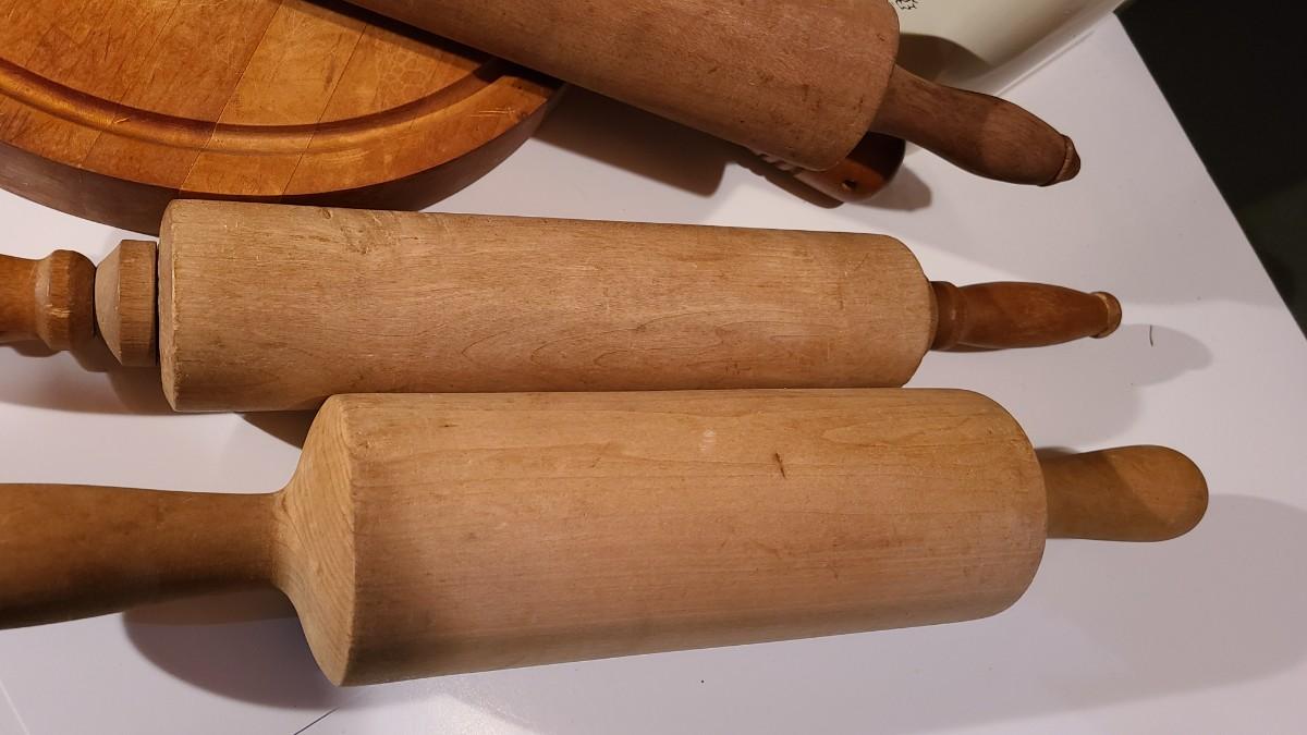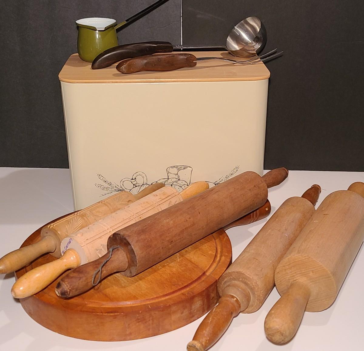 Lot 75: Cooler Kitchen Breadbox, Rolling Pins, Butter Press...