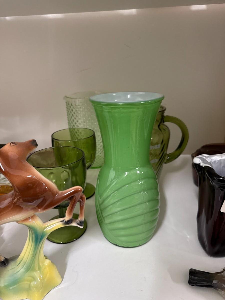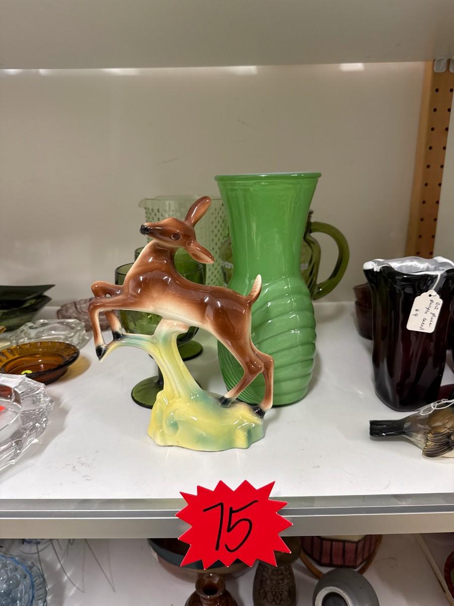 Lot 75 - Deer Figure, Green Glassware