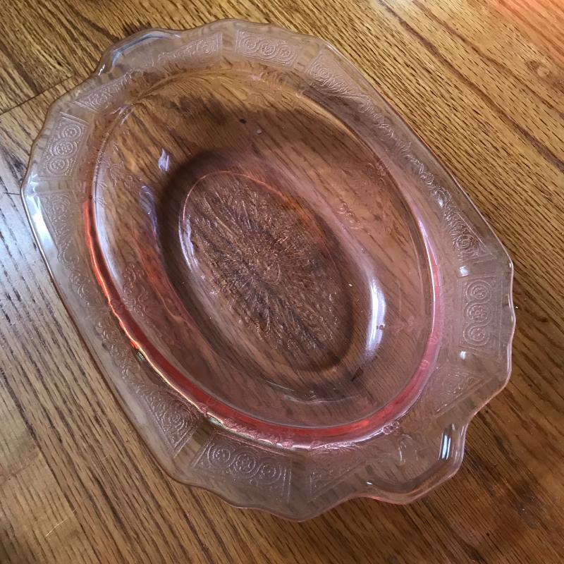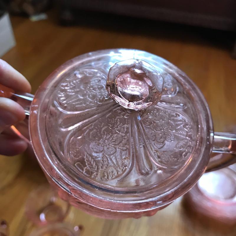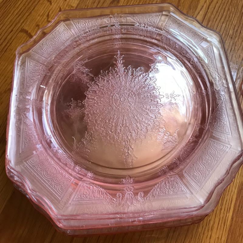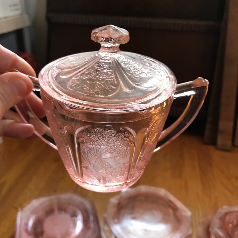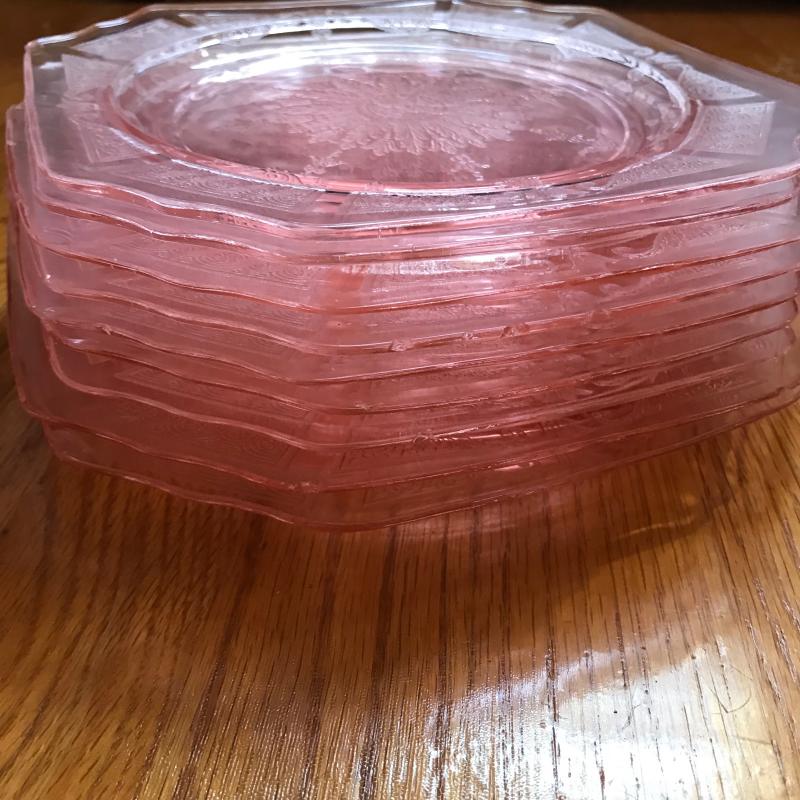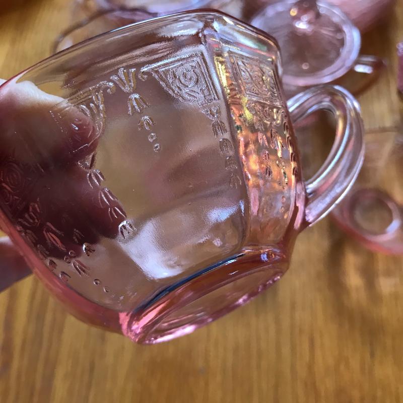 29 pieces of depression glass in several styles and shades of pink. See pics. No shipping available. Local pickup only in Asheville, NC.