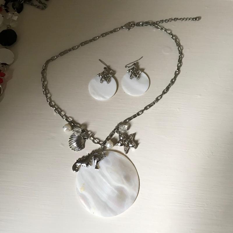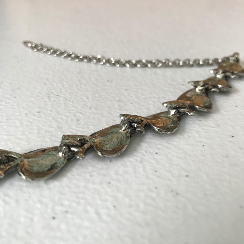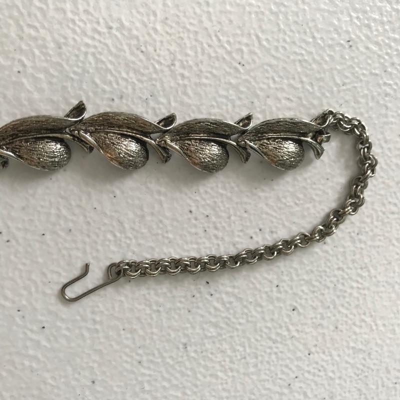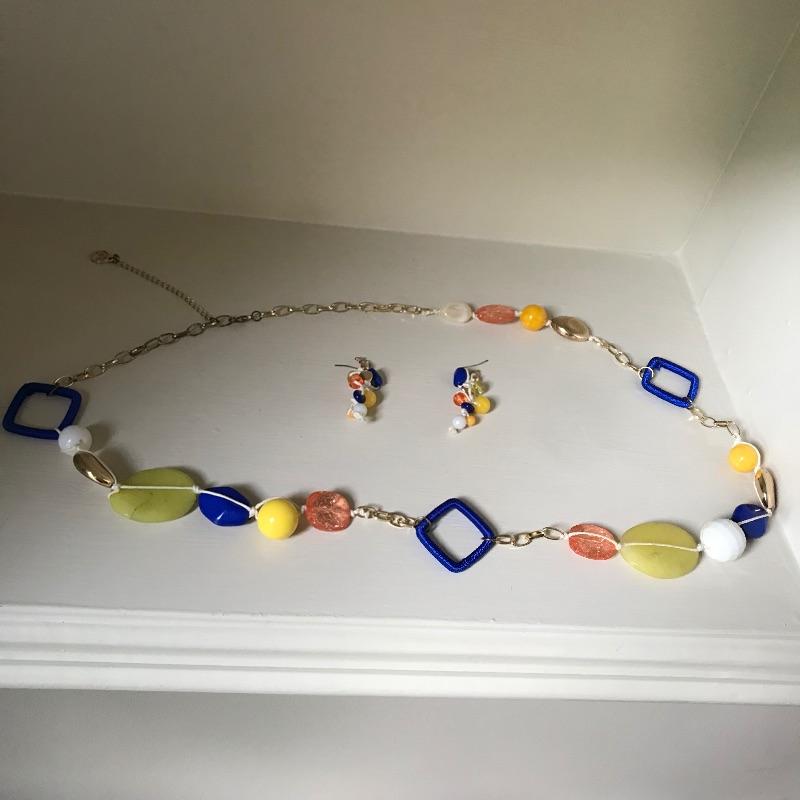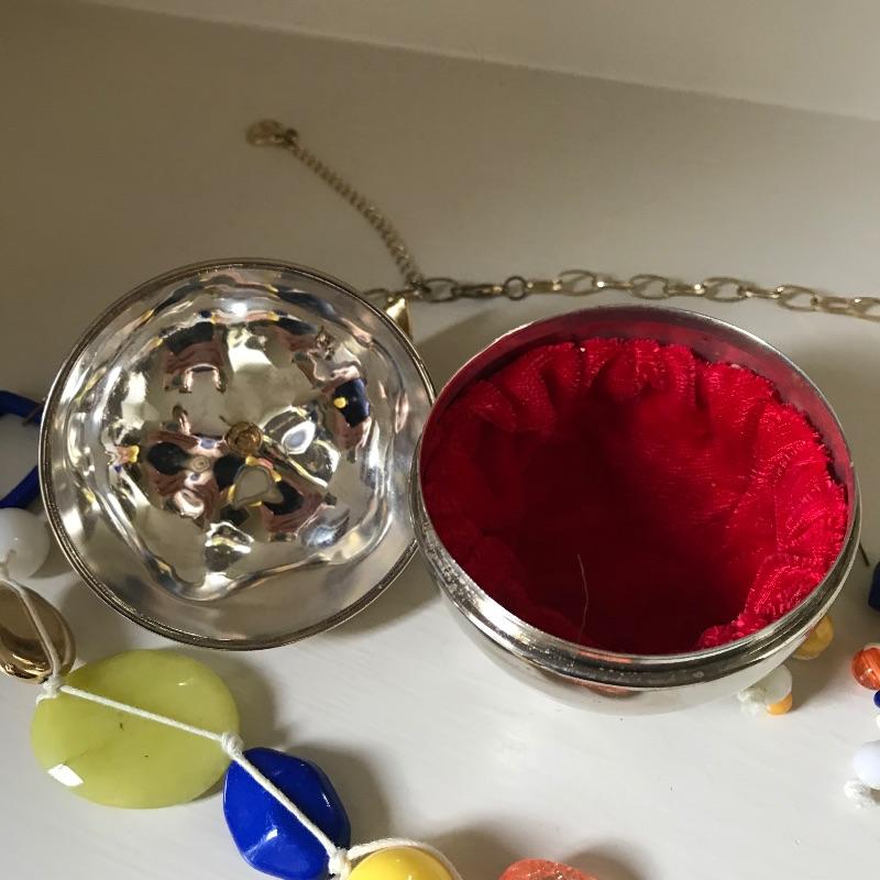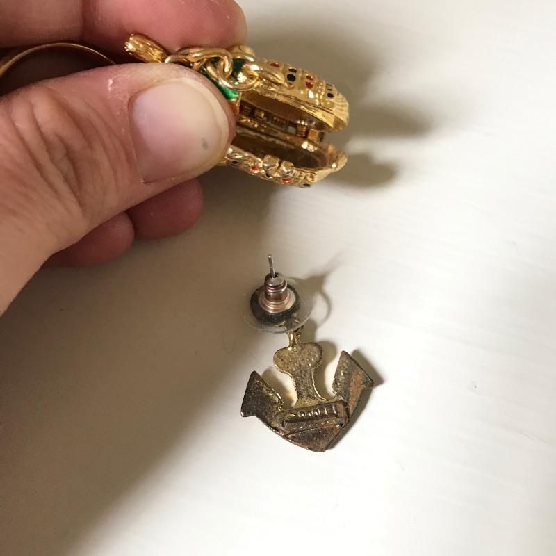 Neat and colorful collection of fashion jewelry for any lady in your life! We’ve given this lot a lot of different looks from casual to elegant. Three earring necklace sets, many pairs of earring for pierced ears, three brooches, an elephant pull box keychain, anchor pin and more! We’ve also added a metal silver and gold colored cloth lined box. Most pieces are unmarked, the silver colored leaf brooch has a Trifari mark. The silver colored necklace, in the fourth picture and final three photos, appears to be hand made, but no markings were found. See photos. Shipping available.