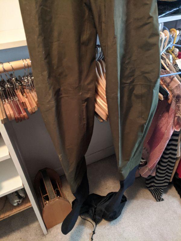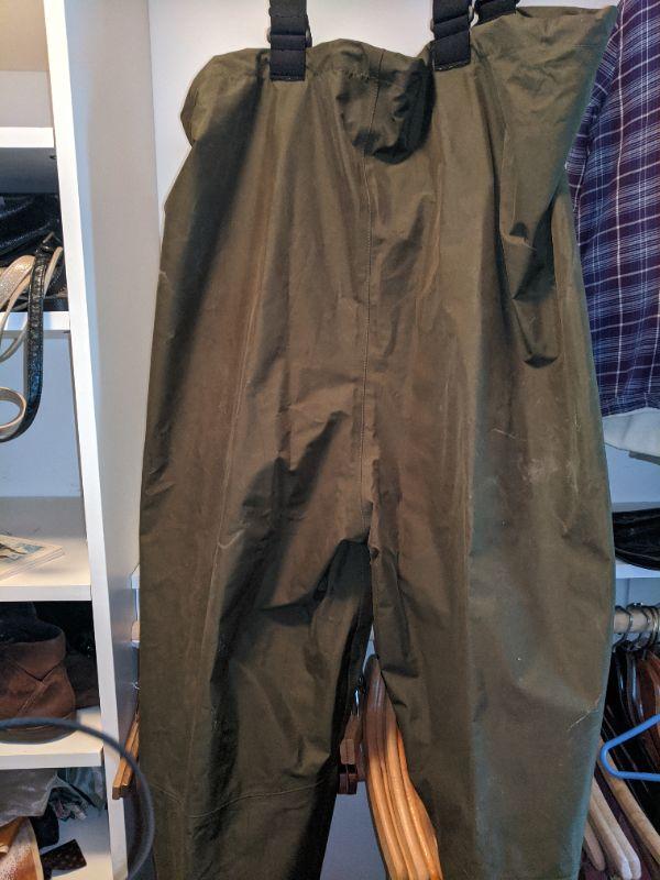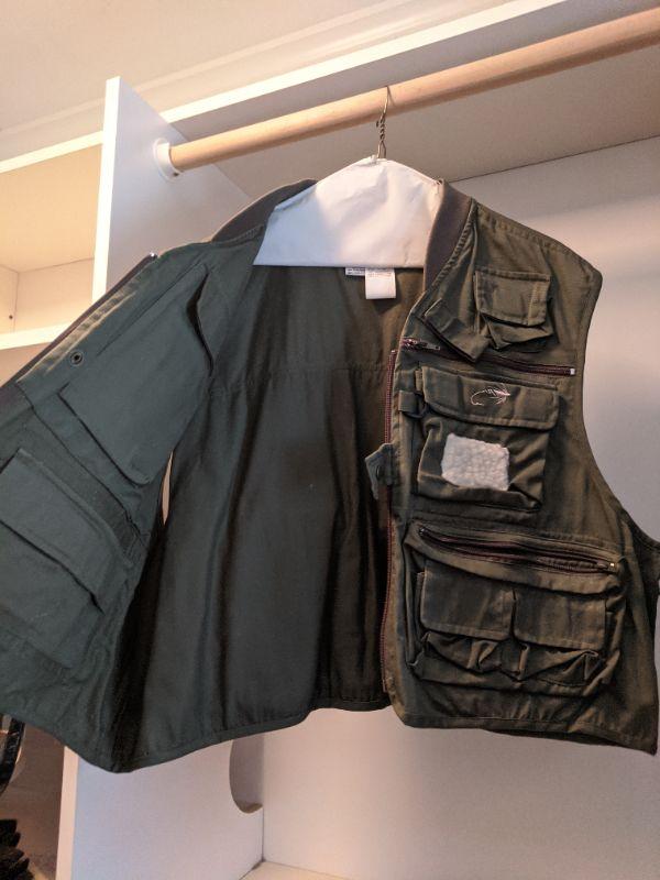 Are you or someone you love into fly fishing? Then this lot is for you! This lot comes with a full body fishing outfit, complete with vest and pants, with size 9.5 boots that come with it. Along with this lot, there is an L.L. Bean fly fishing handbook for the beginners who want to get into it. Add to your fly fishing collection with this great item! Shipping available.