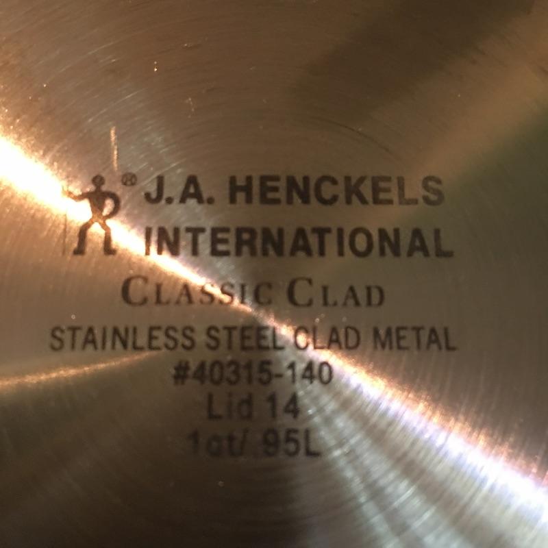 Stainless Henckels 1 quart saucepan in perfect condition! Includes lid. Also in this lot you’ll find a large Endurance pot and large insulated stainless ice bucket that measures 12” tall with 9” D.
