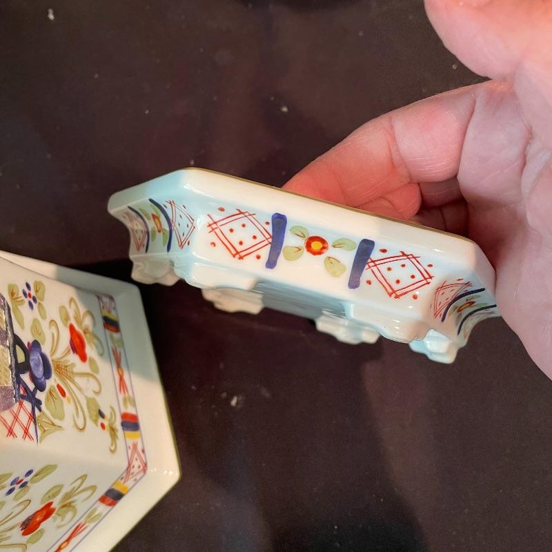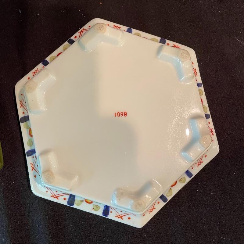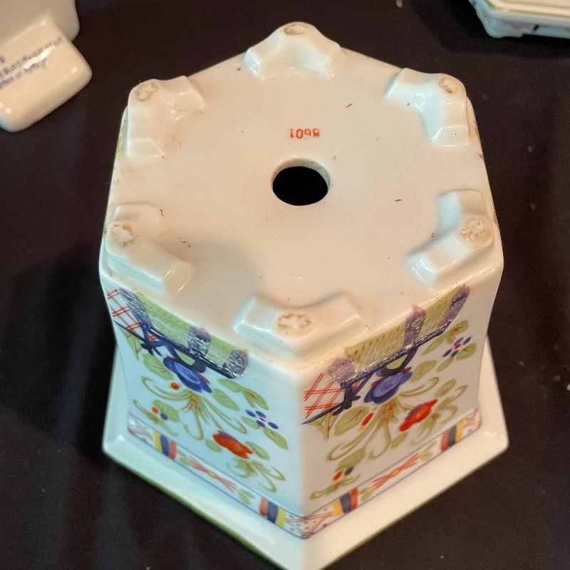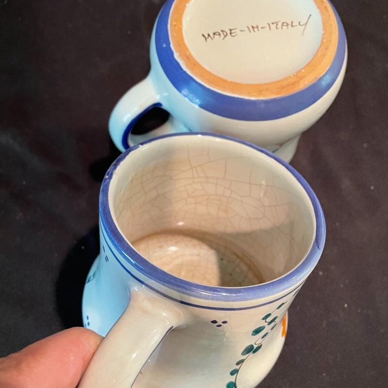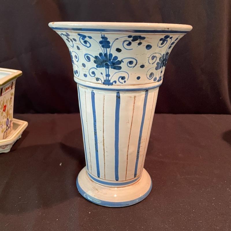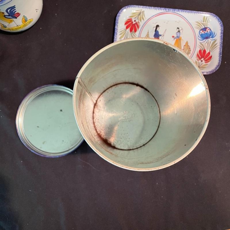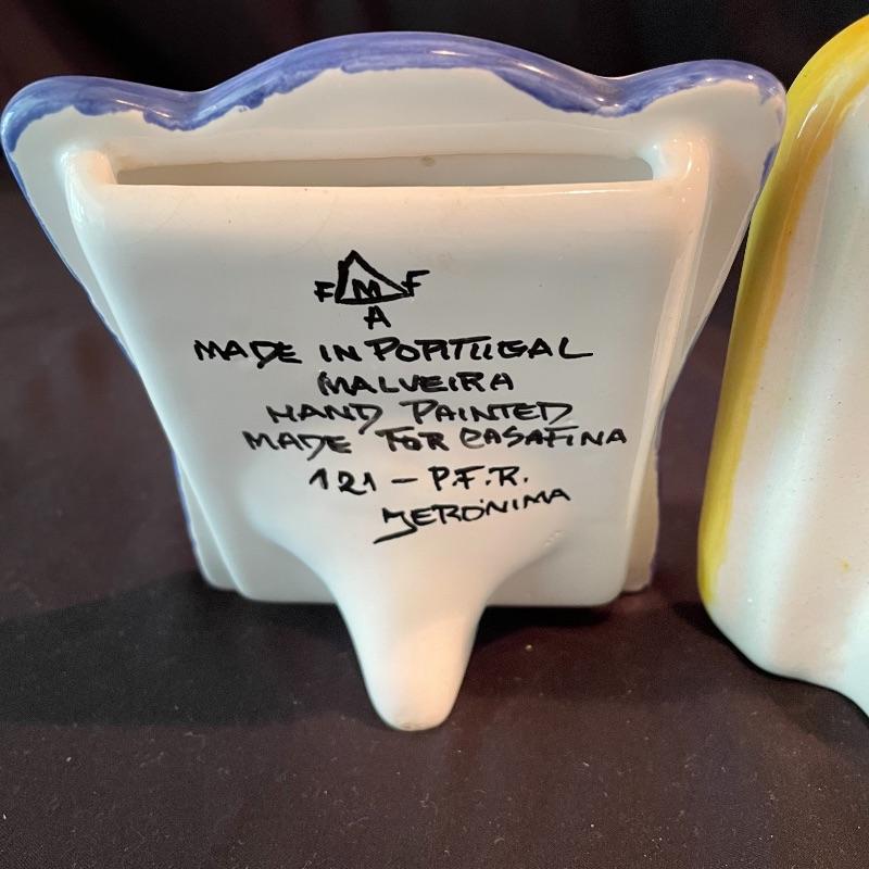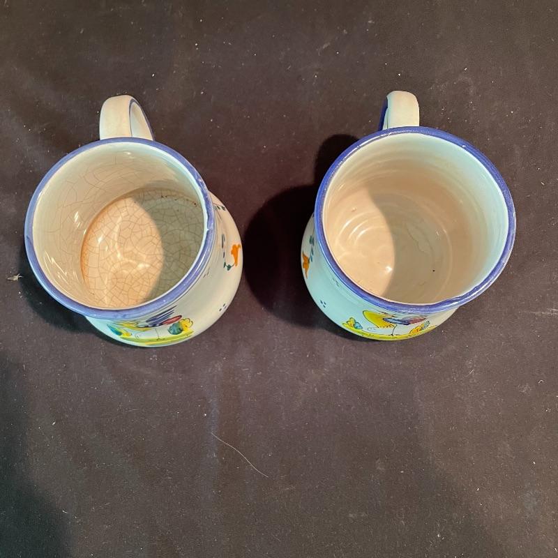 Add some color to your world with this fun international lot. Lot features a lovely hand painted planter with drainage hole and plate. It also has two ceramic picture frames with glass insets, a couple of cheeky rooster mugs and a Spanish bull creamer pitcher. The 8.25” tall vase is simply beautiful even though it has a few chips in the rim. Lastly, a small decorative plate with wall mount and a tin-like canister and rectangular plate duo. See images. Local pick up only.