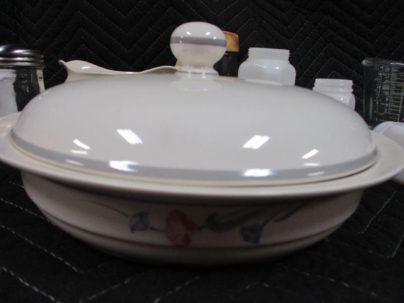 Lot 75 - Kitchen Items - Lenox "Glories On Grey" Covered Dish