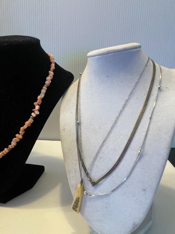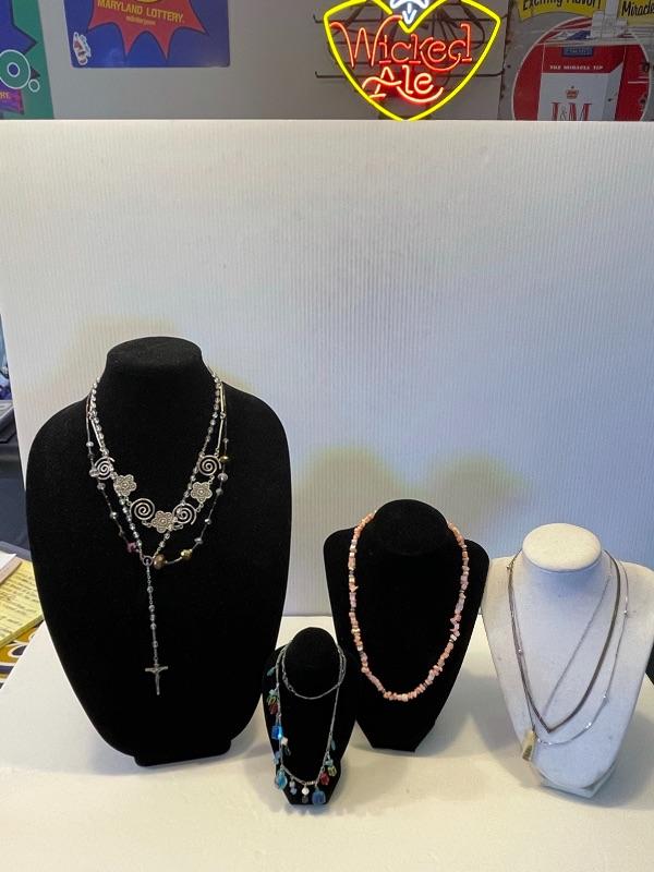 Lot 75 - Lot of (7) sterling silver 925 necklaces and sterling silver rosary