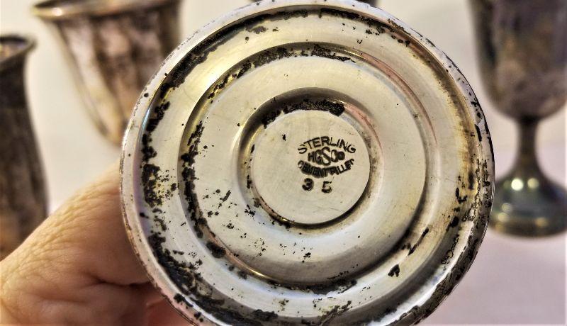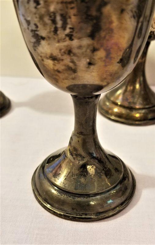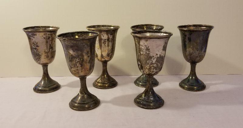 These six matching sterling goblets all have weighted bases. Each stands 6" tall. Fully marked on bottom.