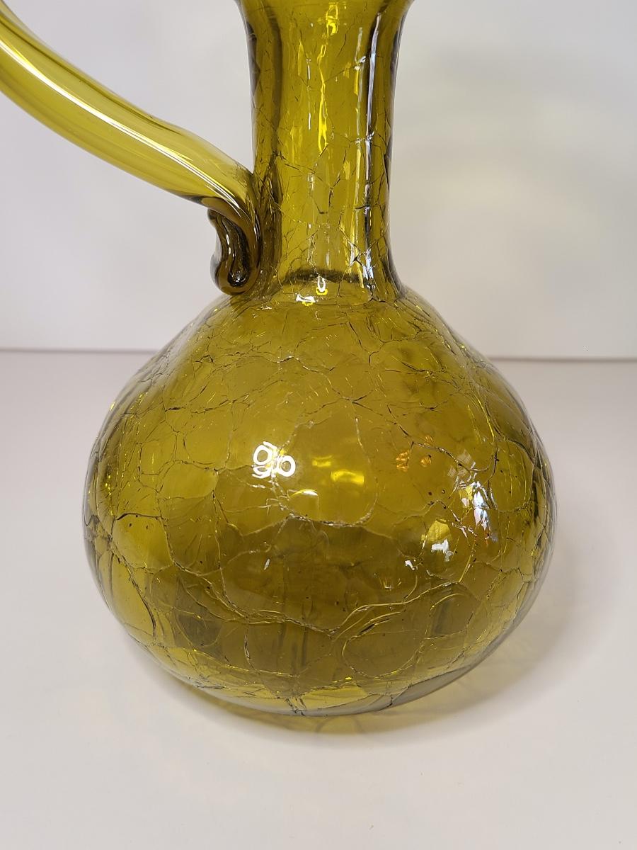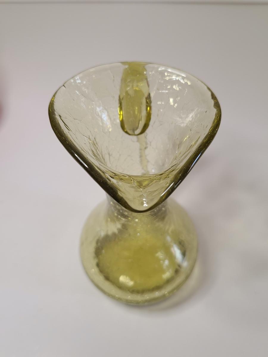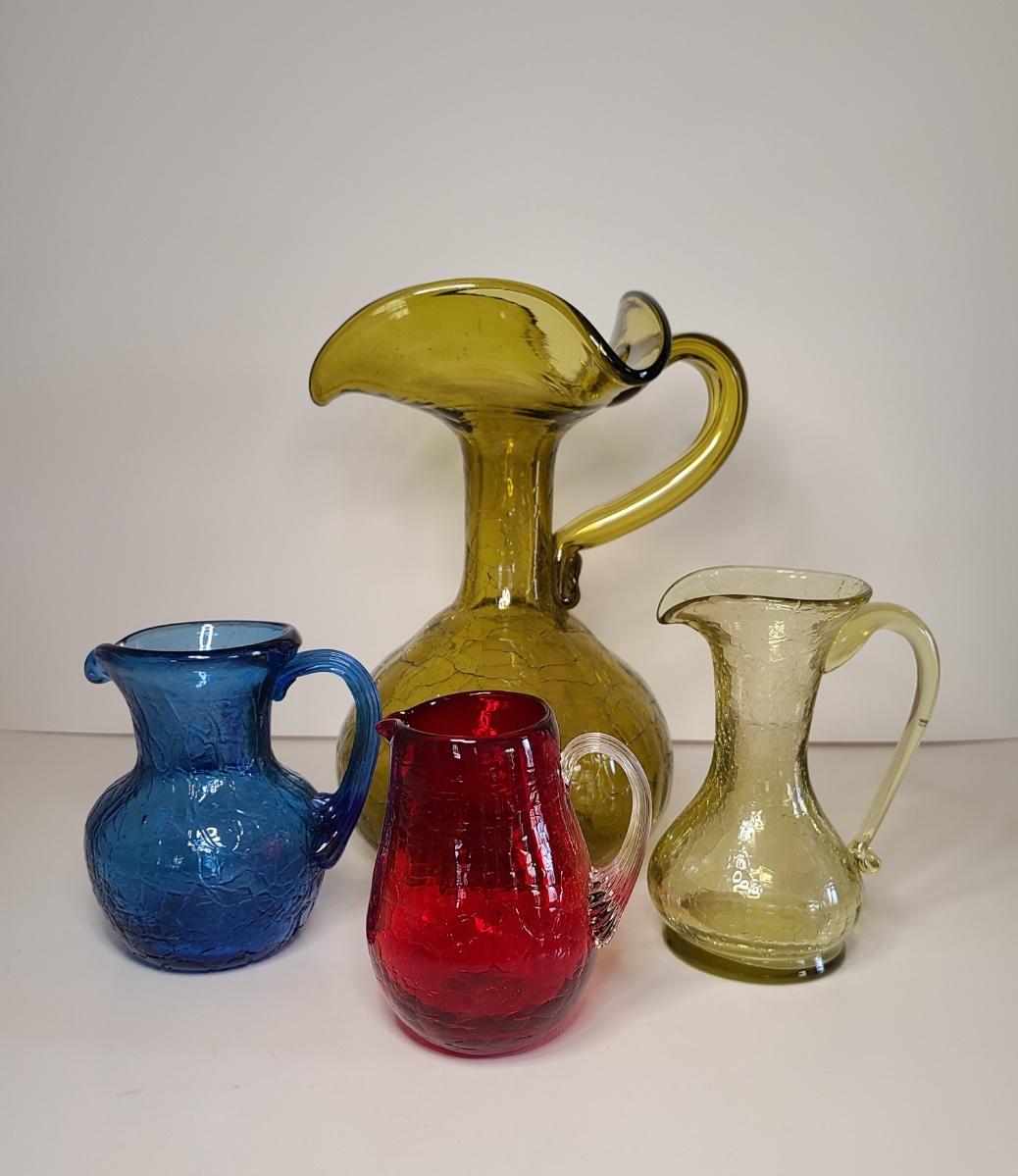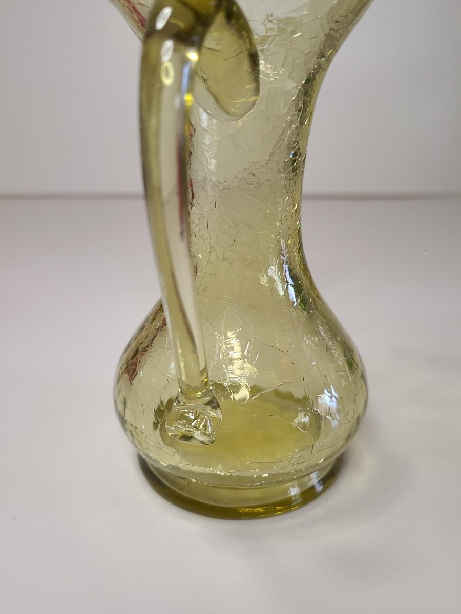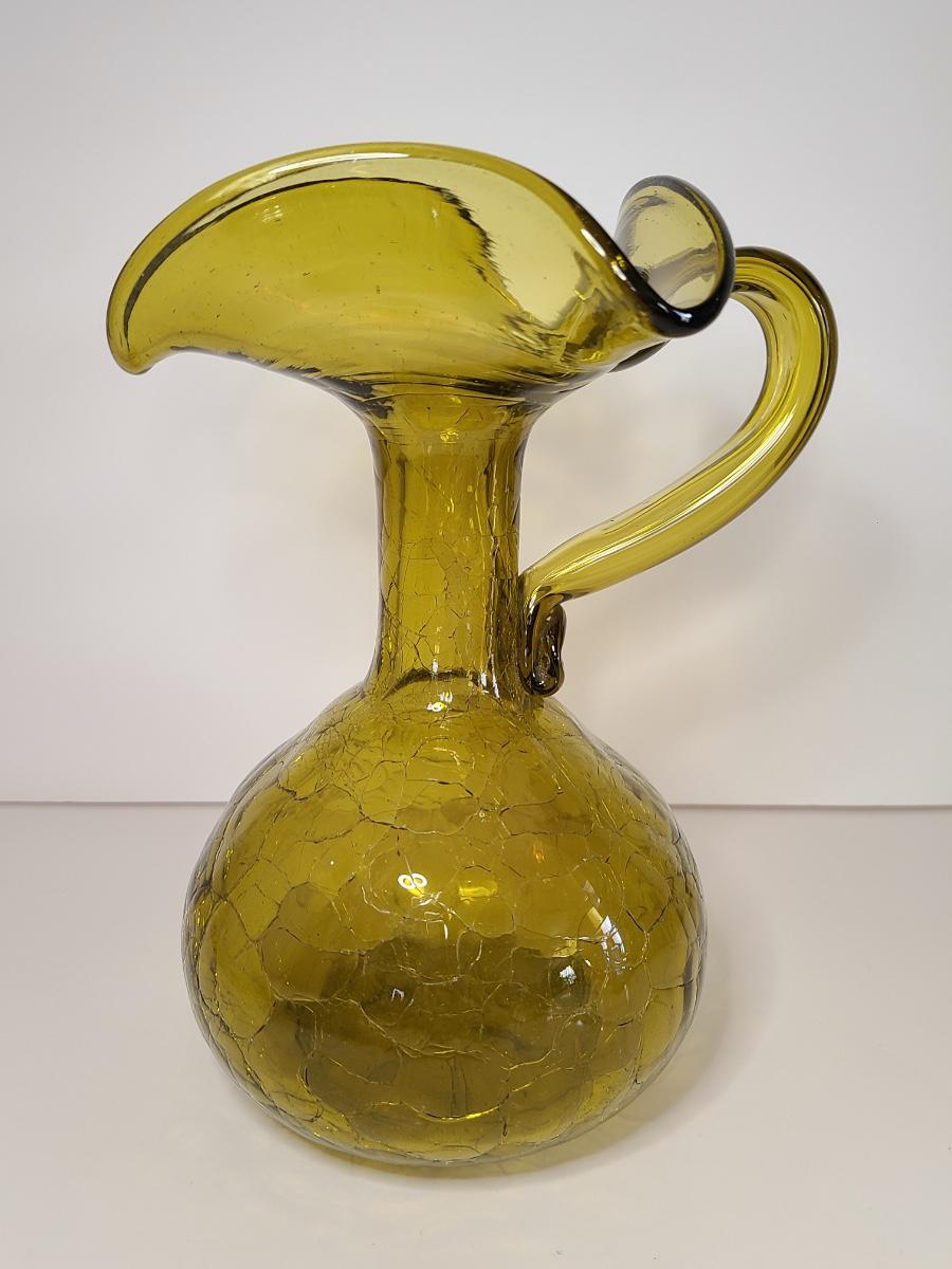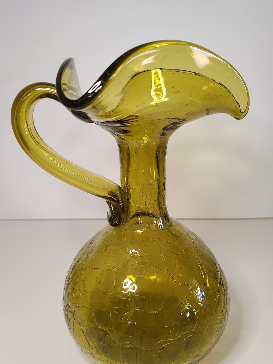 Lot 75: Nine Inch Tall Crackle Glass Pitcher with Flared Rim and More