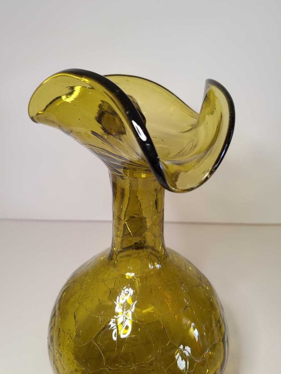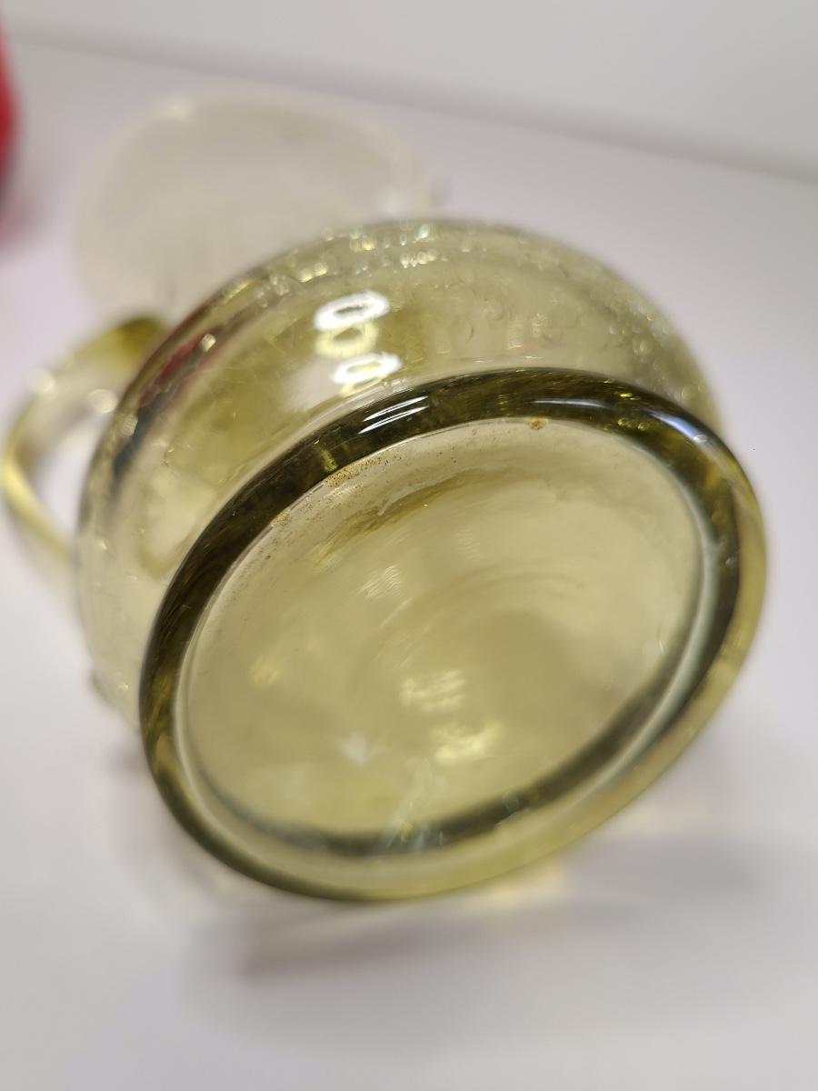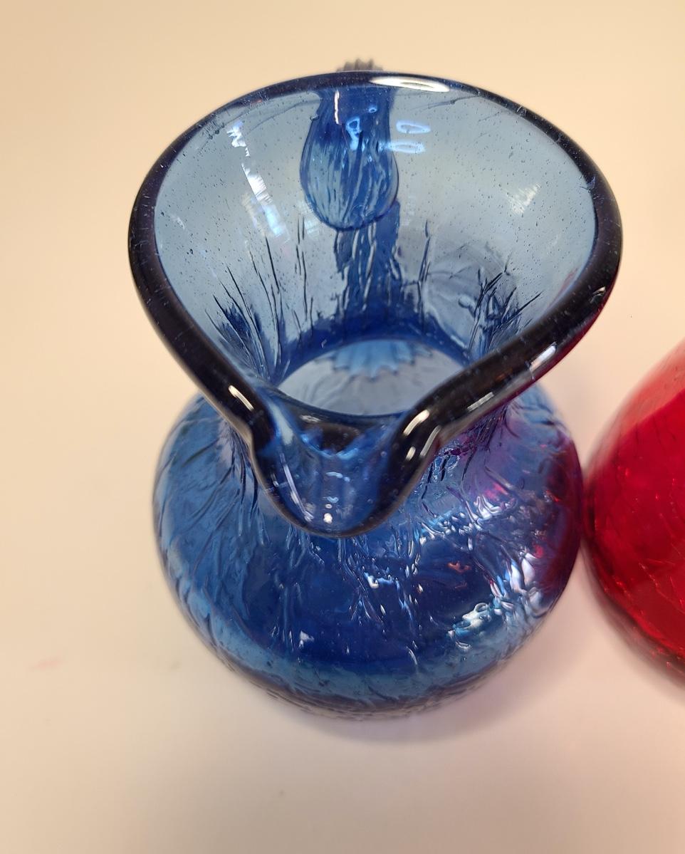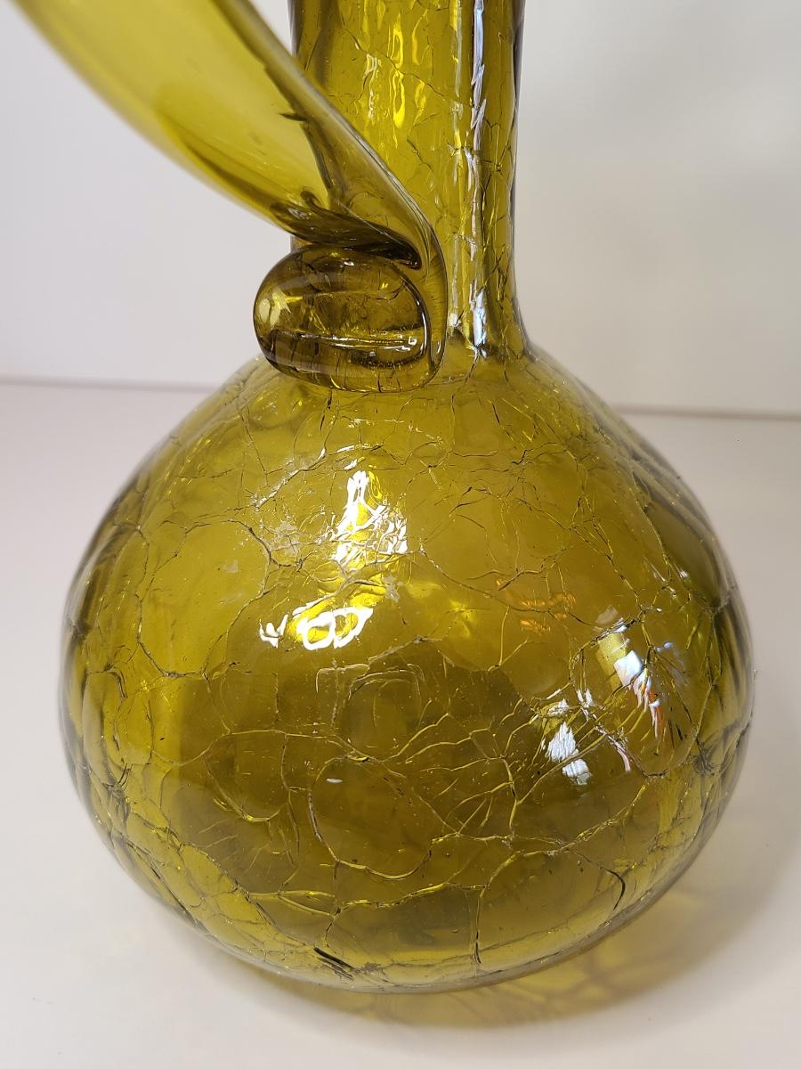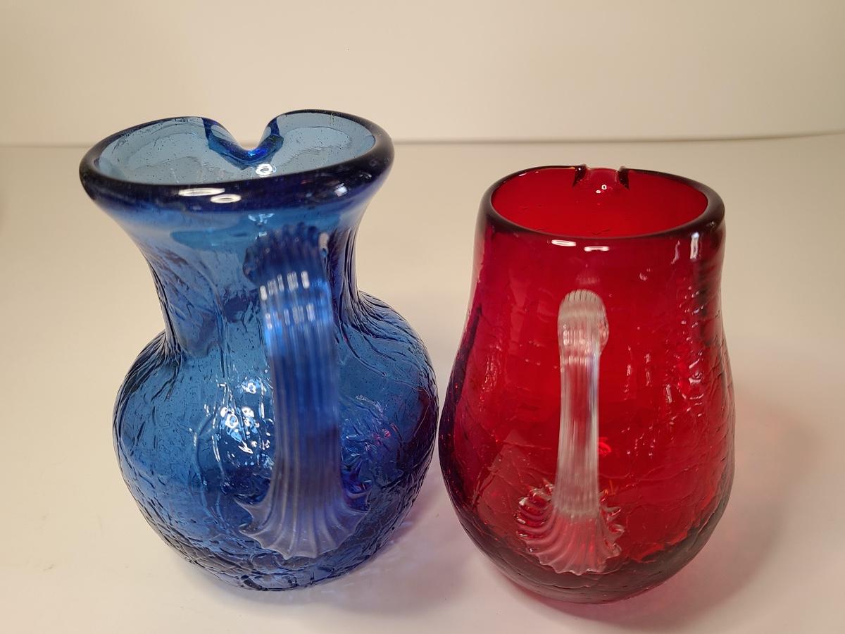 Lot 75: Nine Inch Tall Crackle Glass Pitcher with Flared Rim and More