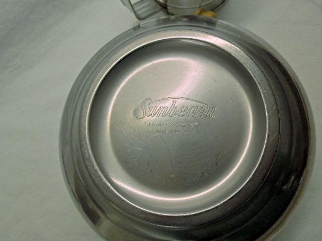 Panasonic Model SD-VD205 ; a metal mixing bowl; a marble rolling pin with wood stand; a vintage metal flour sifter. Clean and working.