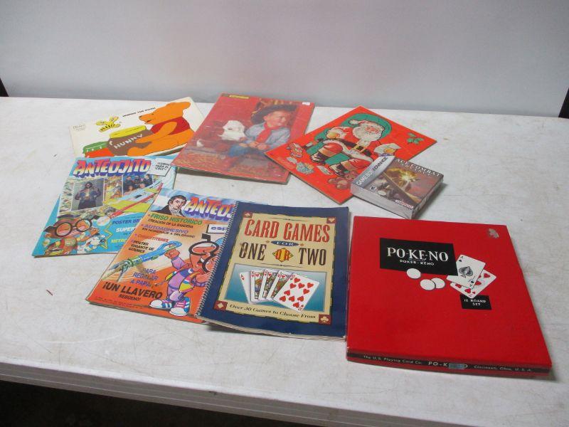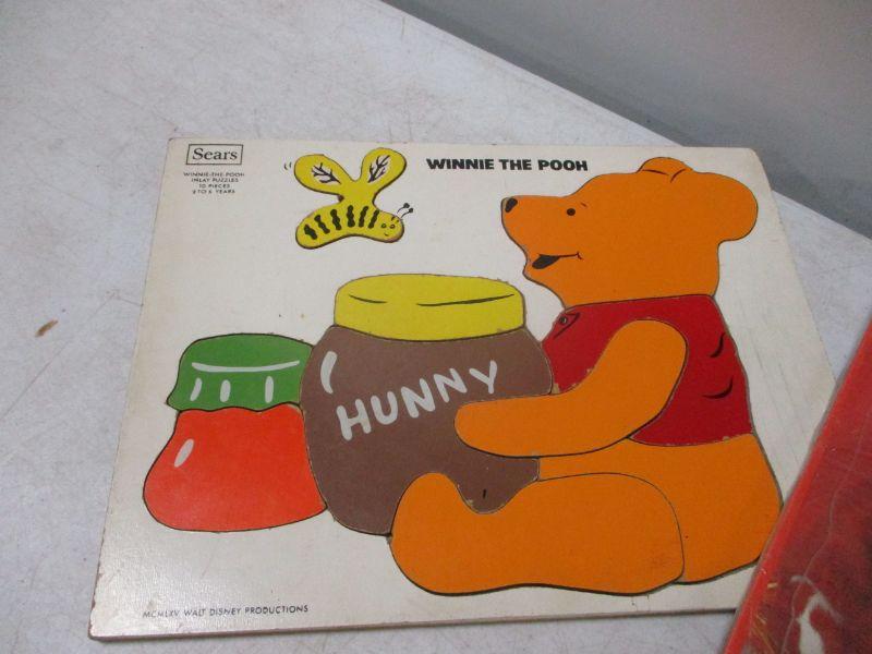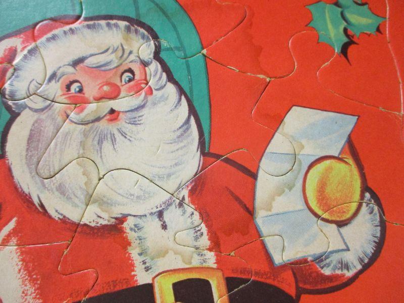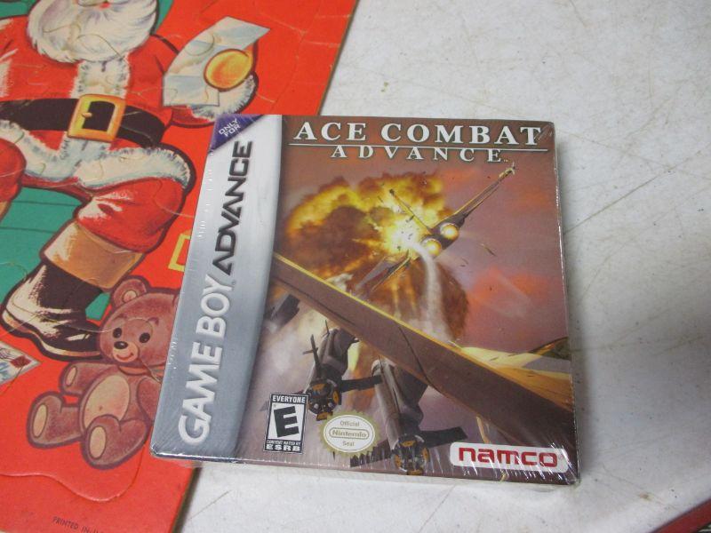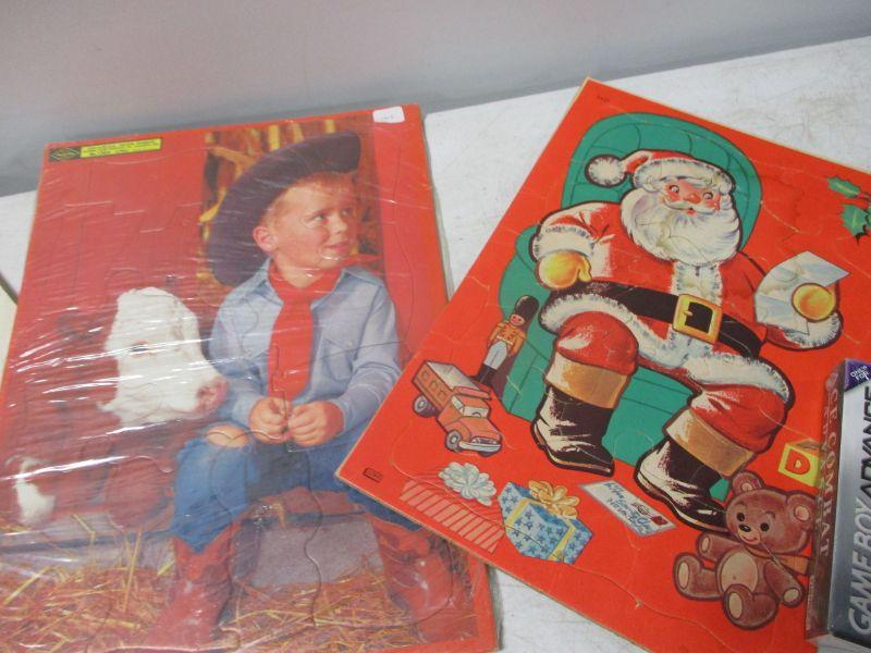 The lot you are bidding on has 3 puzzles, 1 is a Sears puzzle, comic books, game boy advance Ace Combat and card games. Santa puzzle does have a stain