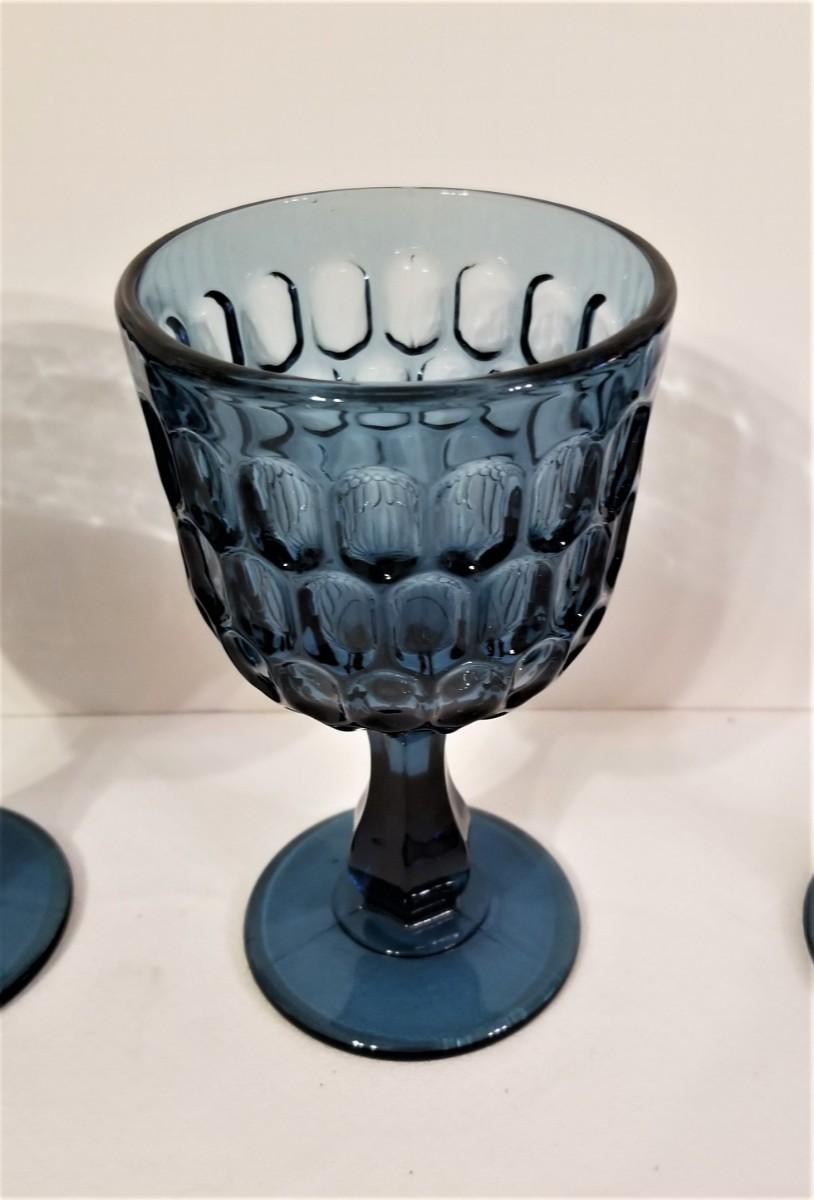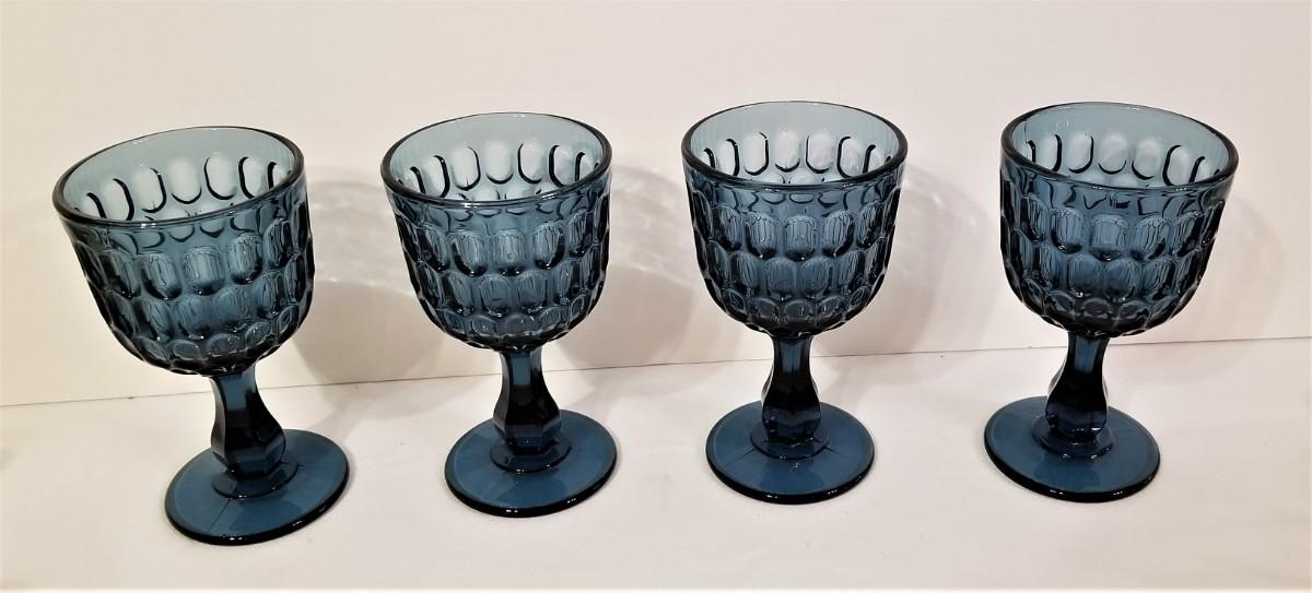 Set of 4 mid-century style drinking glasses - very good condition. Each stands 6.5" tall. Deep blue color.