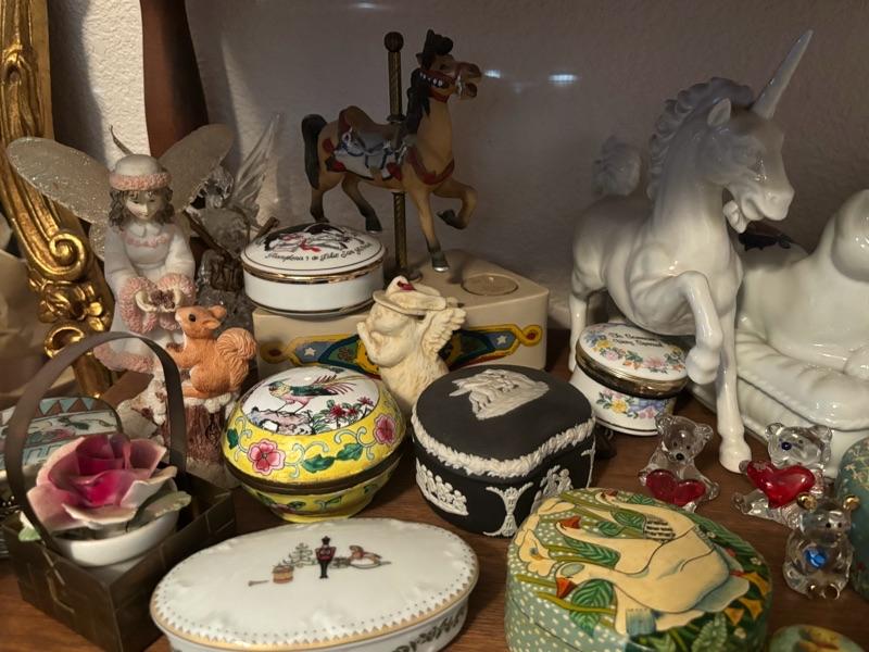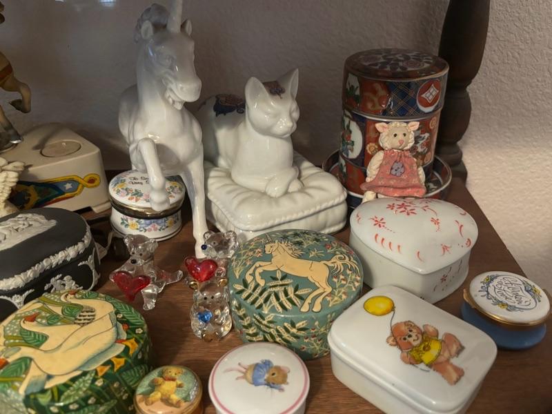 Lot 75 - Shelf of Trinket Boxes, Unicorn, Angel, Carousel Horse